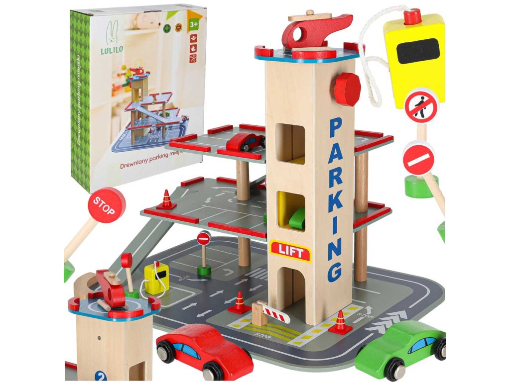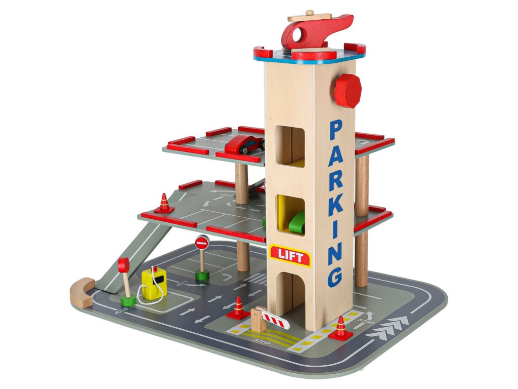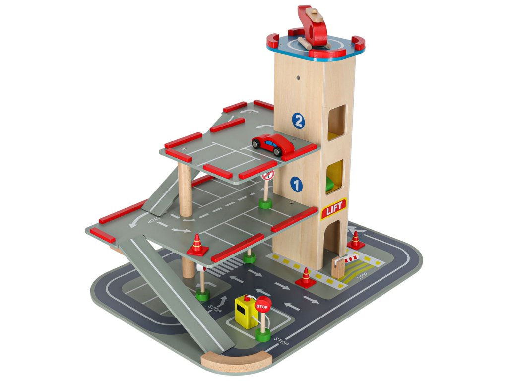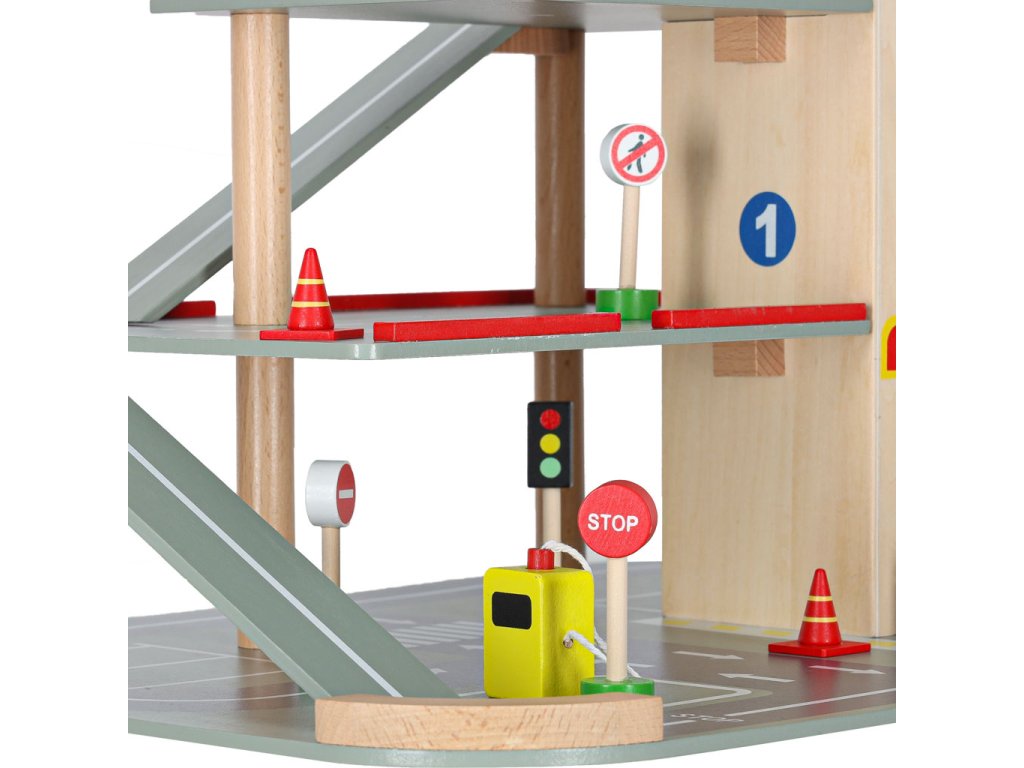 Krásná dřevěná městská garáž má čtyři úrovně ! První tři jsou určeny pro autíčka - je zde místo pro dřevěná autíčka, která jsou součástí sady, i pro mnoho dalších vozidel pro vaše dítě. Do dalších úrovní se lze dostat výtahem!