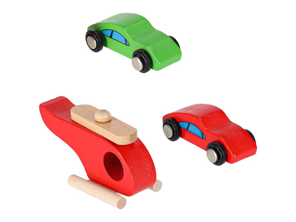 Souprava s obrovským parkovištěm zahrnuje také dvě auta s pohyblivými koly a vrtulník s pohybující se vrtule.