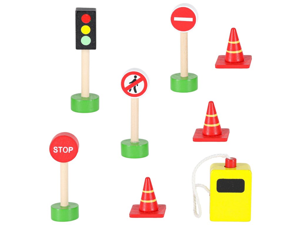Sada obsahuje také sad doprava značky pro řízení a směrování dopravy. Kromě toho seznámí batole s významem dopravních značek, včetně značek pro chodce.