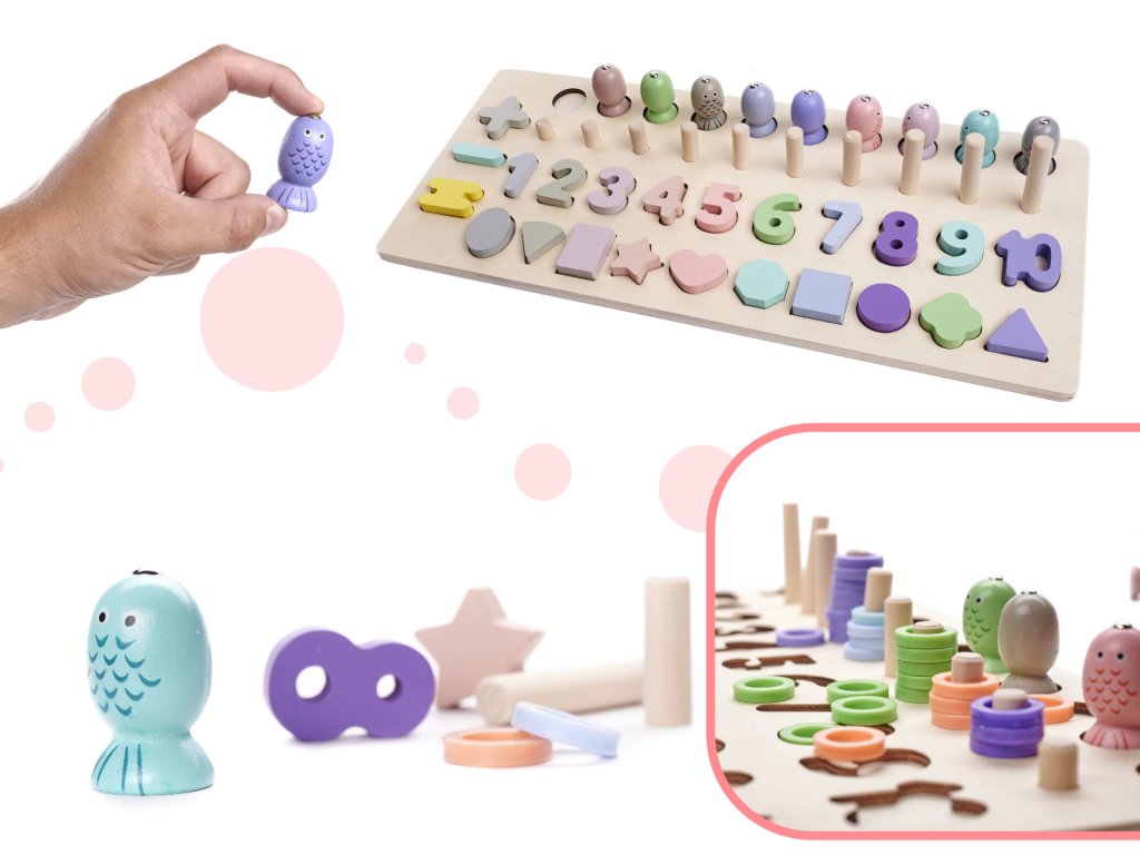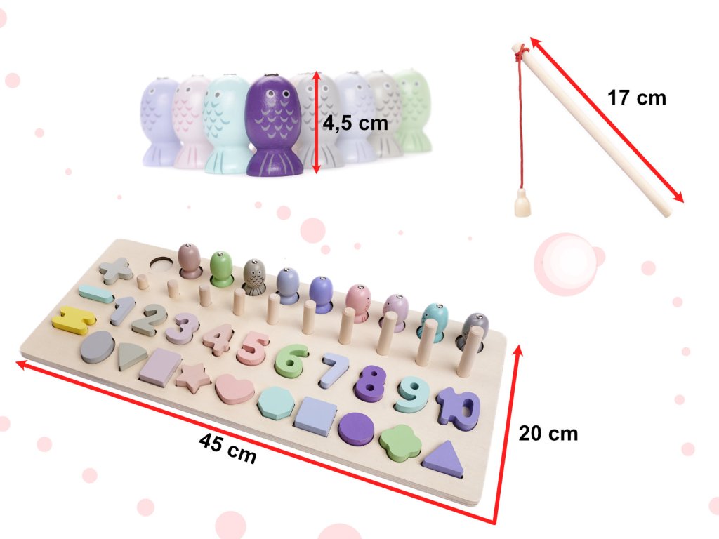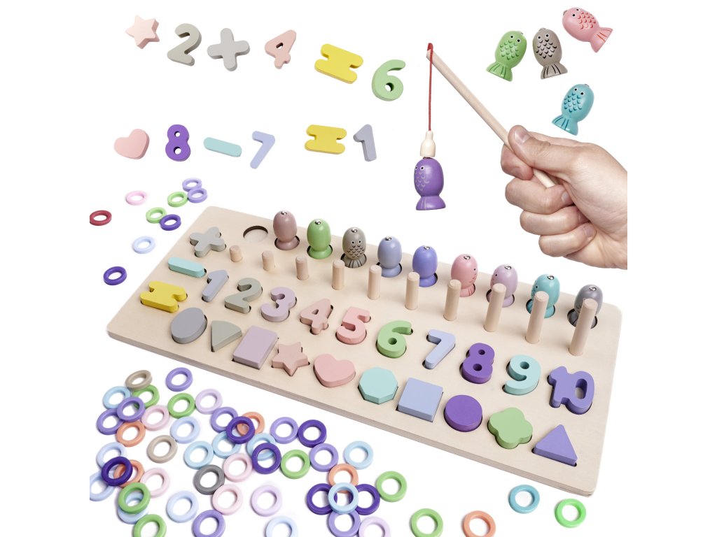 Dřevěné počítací kolo ryby lovící čísla tvary