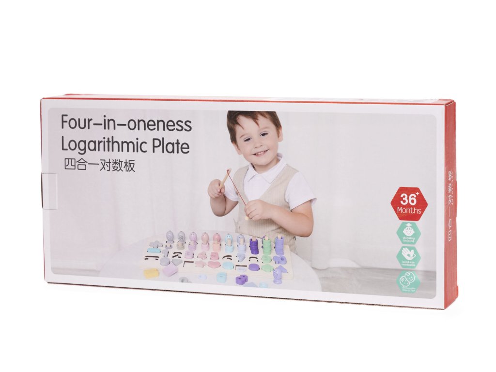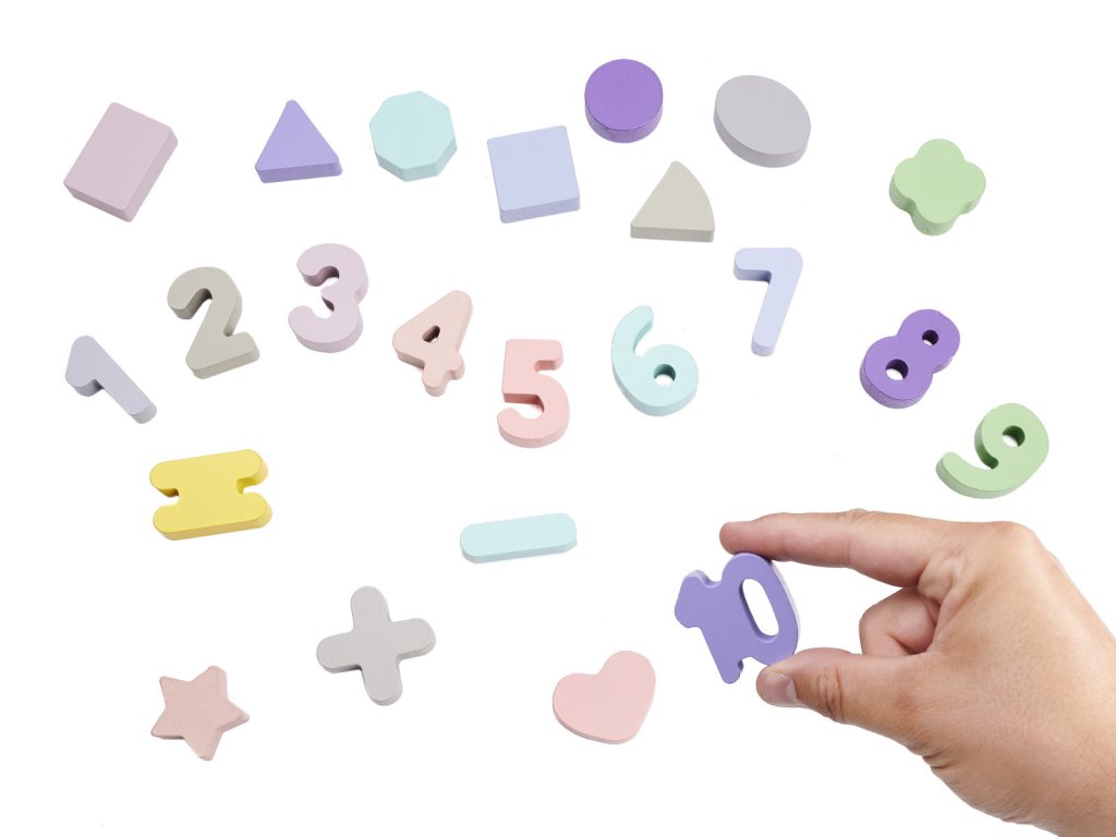 Sada obsahuje barevné geometrické tvary a čísla, která se přiřazují k příslušným otvorům. Tato hra učí děti rozpoznávat tvary a pomáhá jim učit se čísla.