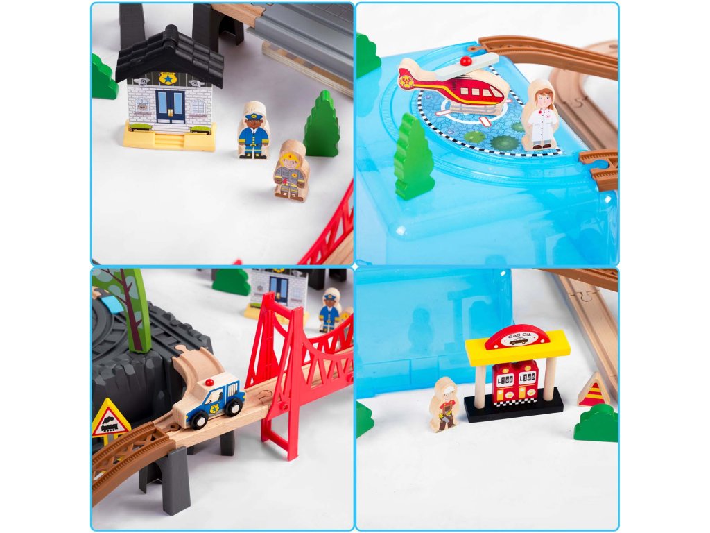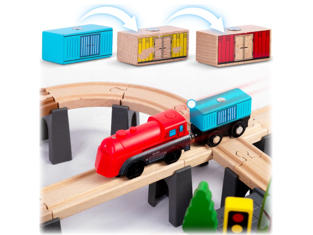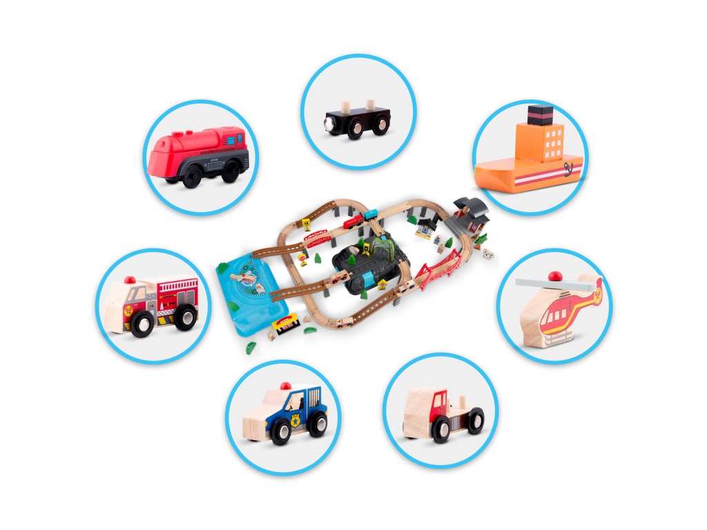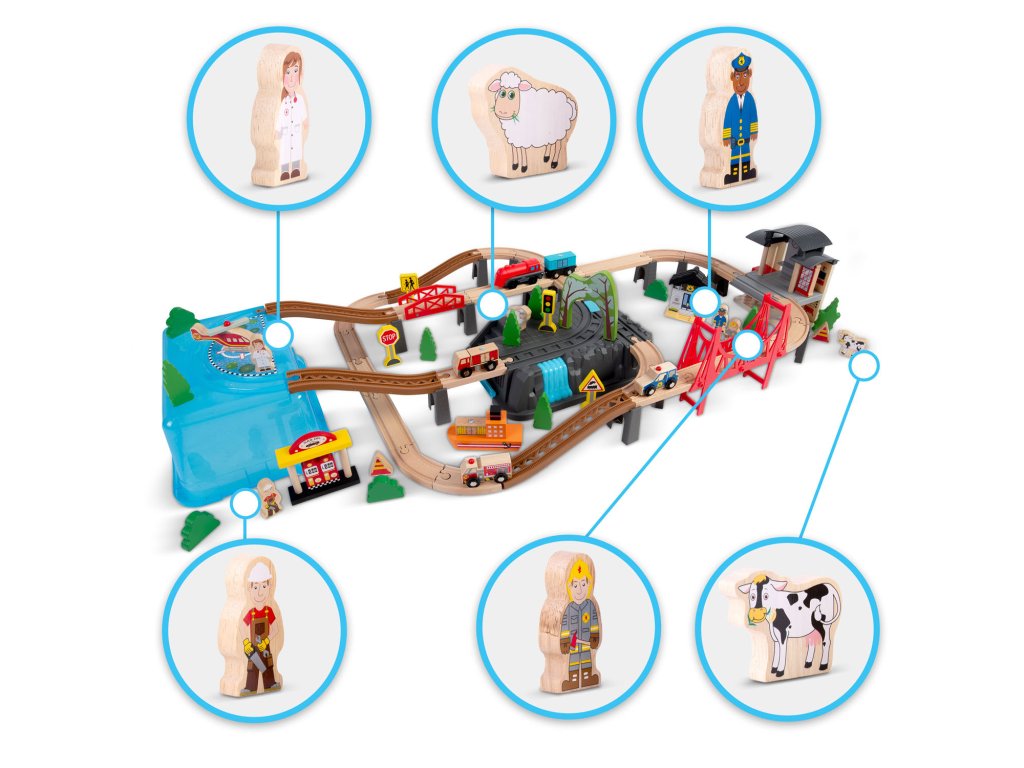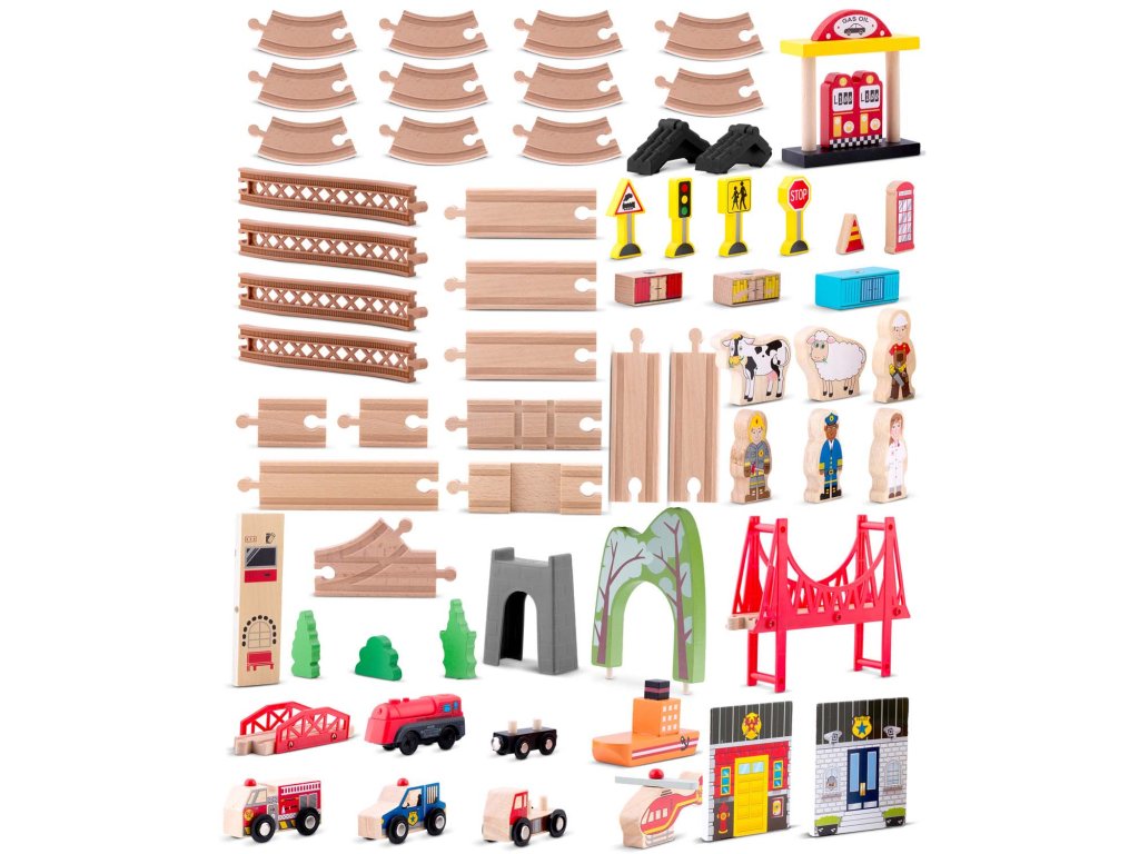 Dřevěné železniční městečko VELKÁ SADA 100 dílků.