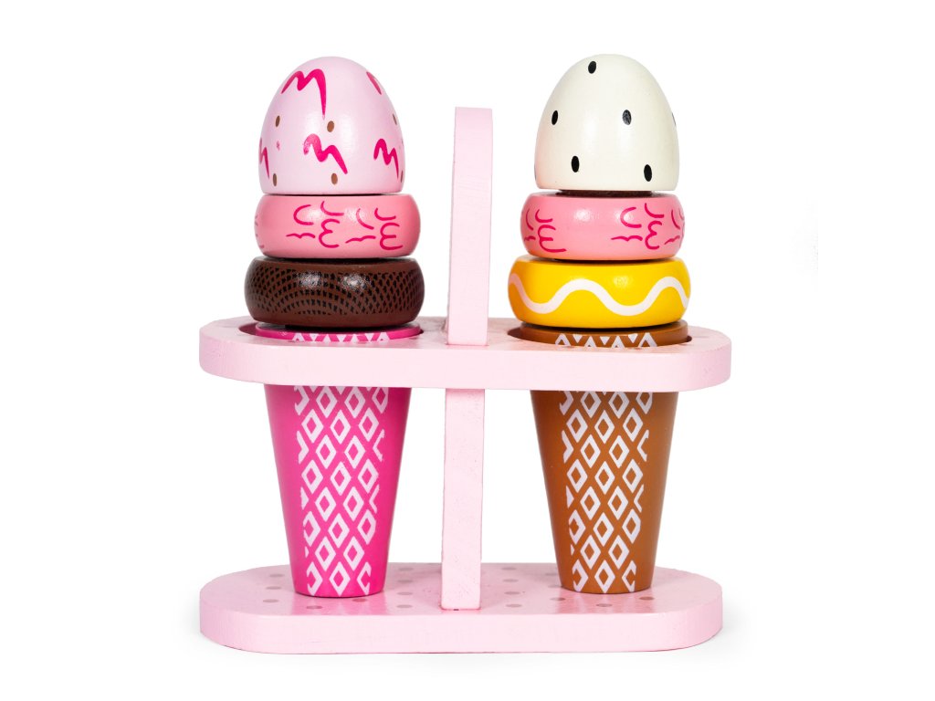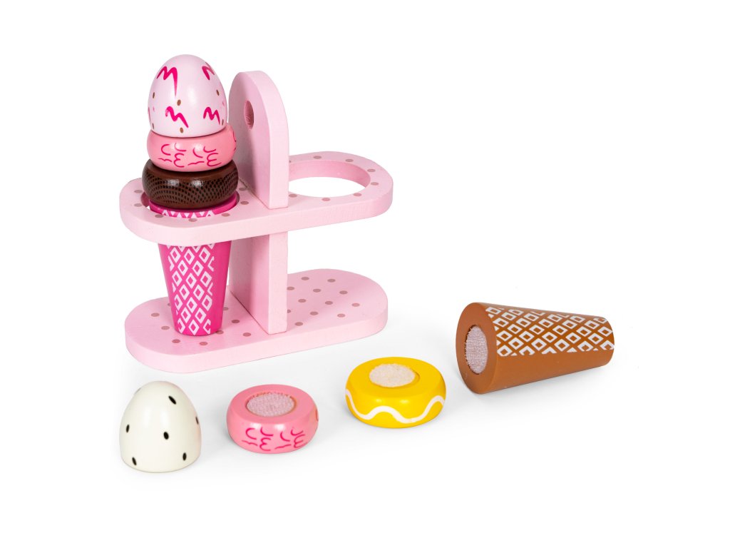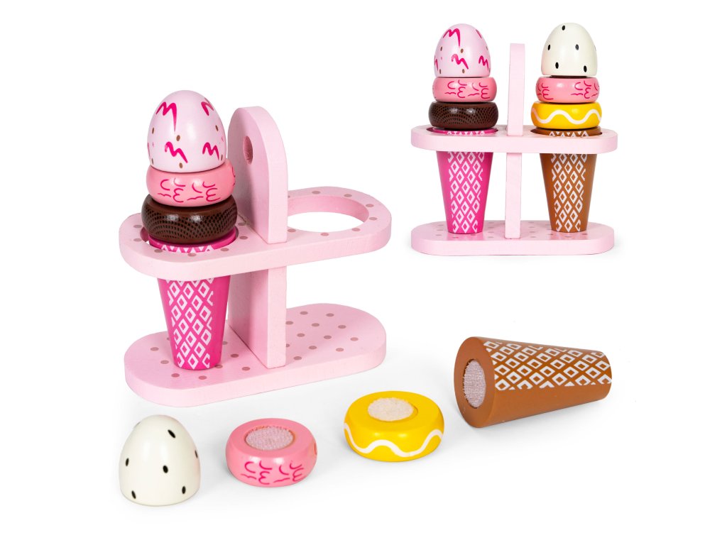 Dřevěný stánek na zmrzlinu je hra se stává ještě poutavější , díky kterému mohou děti představí své verze letních lahůdek. Stojan bude ideální i pro děti, které již mají vlastní kuchyňku nebo hračkářství, přidává další prvek, který hru ještě více zpříjemňuje.