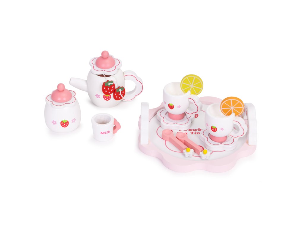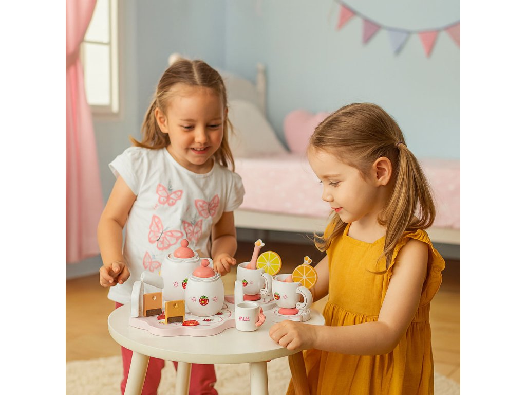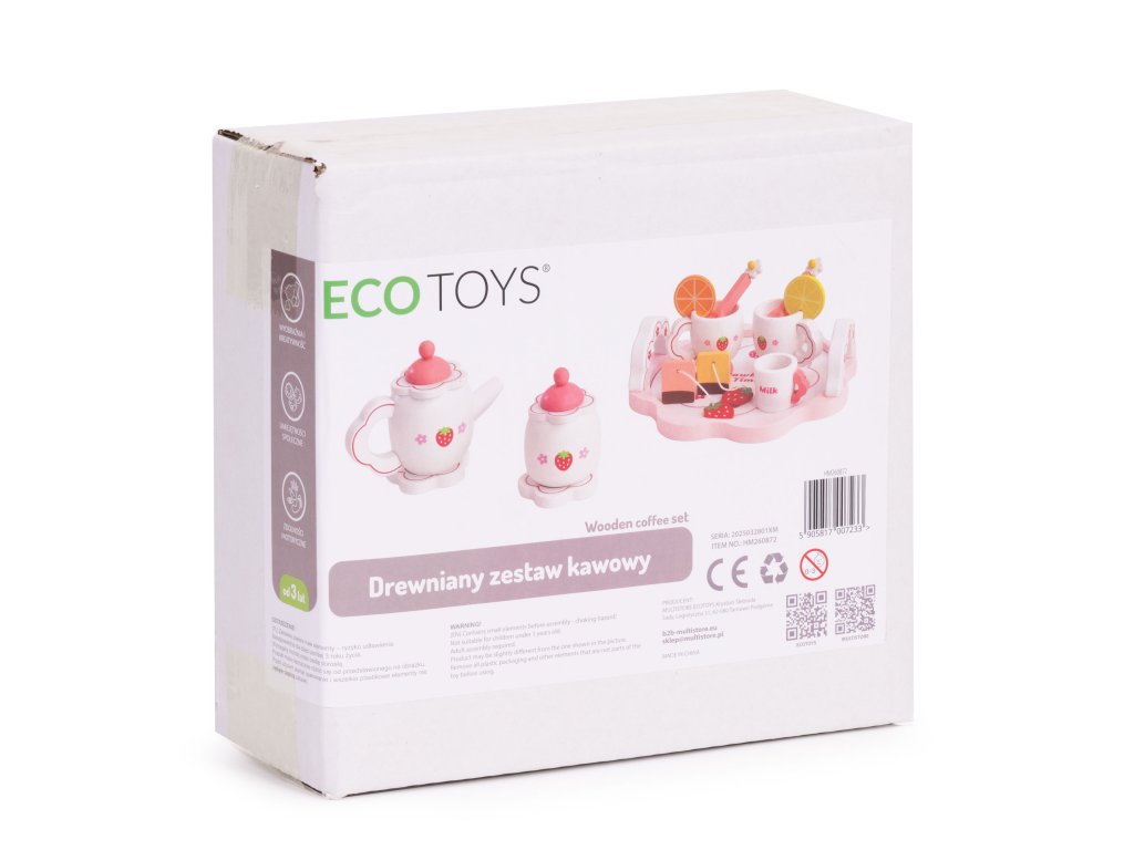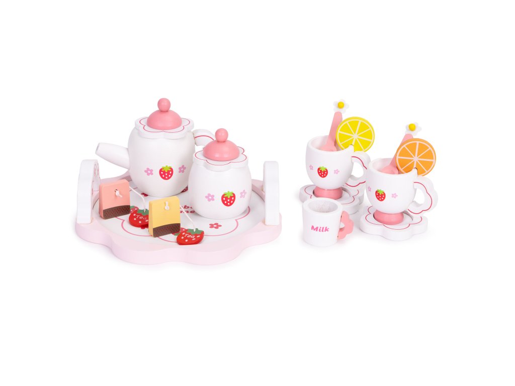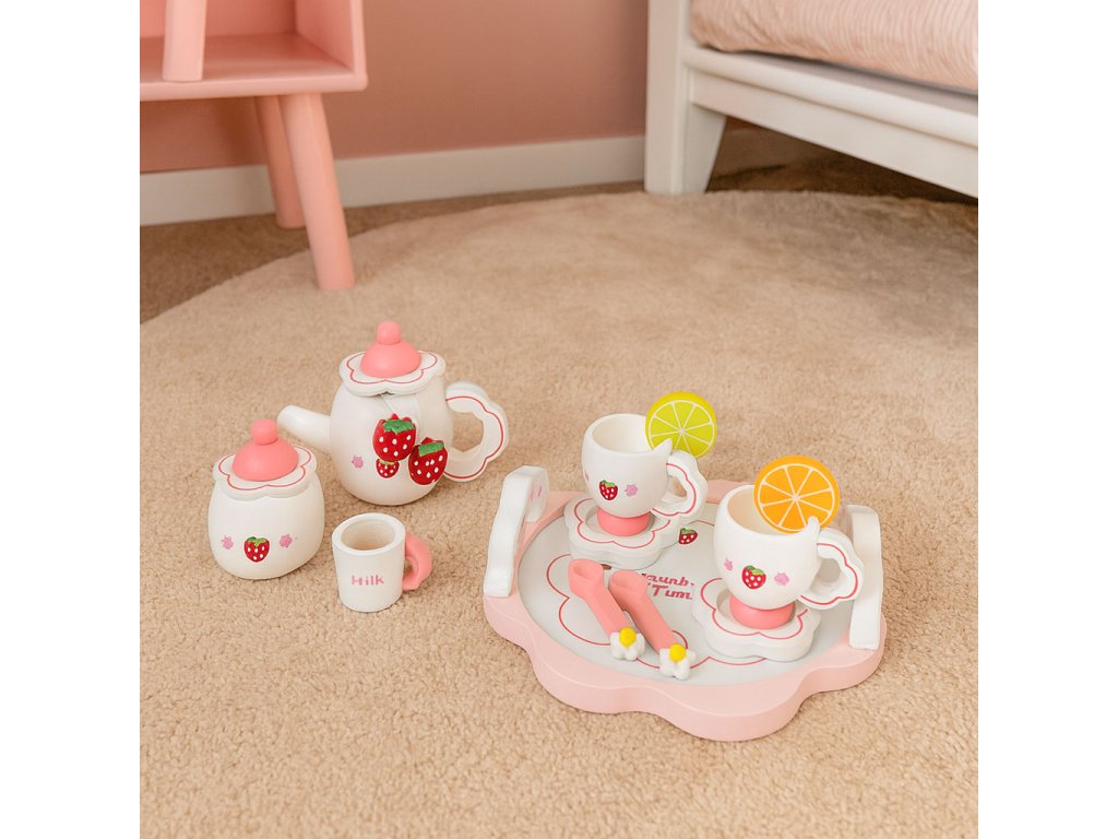 Dřevěná sada ECOTOYS je krásný způsob, jak uvést batole do světa kreativní hry. Sada se skládá z 14 pečlivě vytvořených komponentů - ze džbánu a šálků do nádoby s plátky citronu a cukrem. Dívčí téma s jahodami přitahuje pozornost a podněcuje představivost. Dítě může pozvat rodinu, panenky nebo plyšové hračky na odpolední čaj a sehrát scénky, které mu pomohou učení se o rolích a empatii . Sada je ideální pro kuchyňku na hraní, kavárnu nebo obchod - poskytuje spousta herních možností . Všechny komponenty jsou vyrobeny z přírodní, bezpečné dřevo což zaručuje estetiku a trvanlivost. Je to vynikající způsob, jak budovat vztahy, rozvíjet představivost a učit se přátelsky komunikovat.