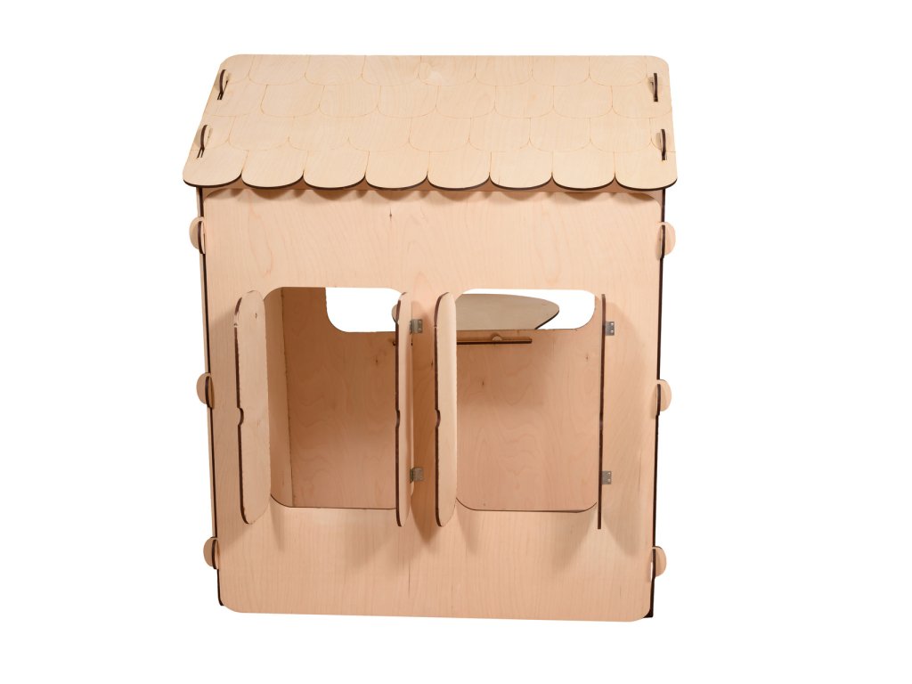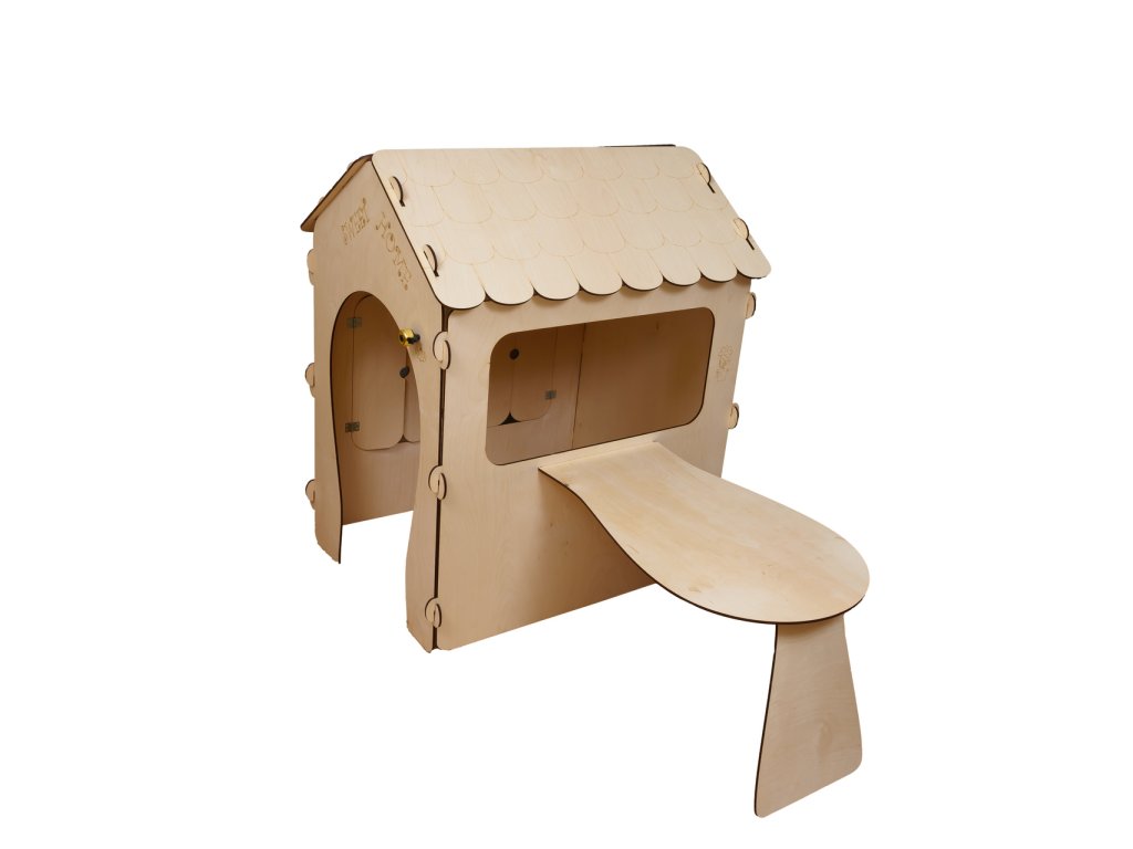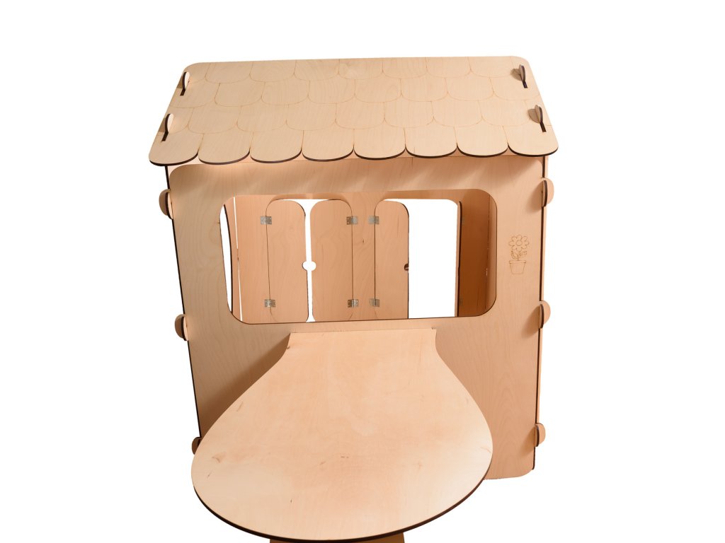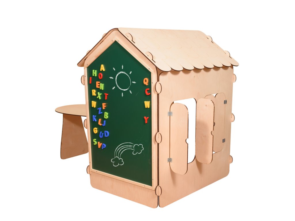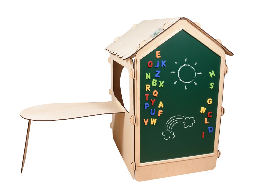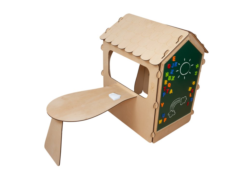 Dřevěný dětský domeček s deskou a stolem