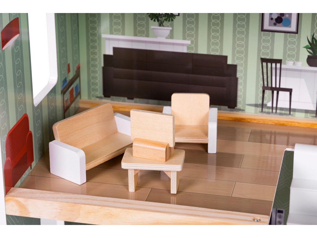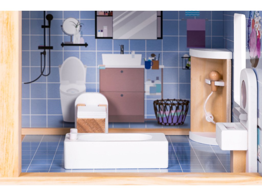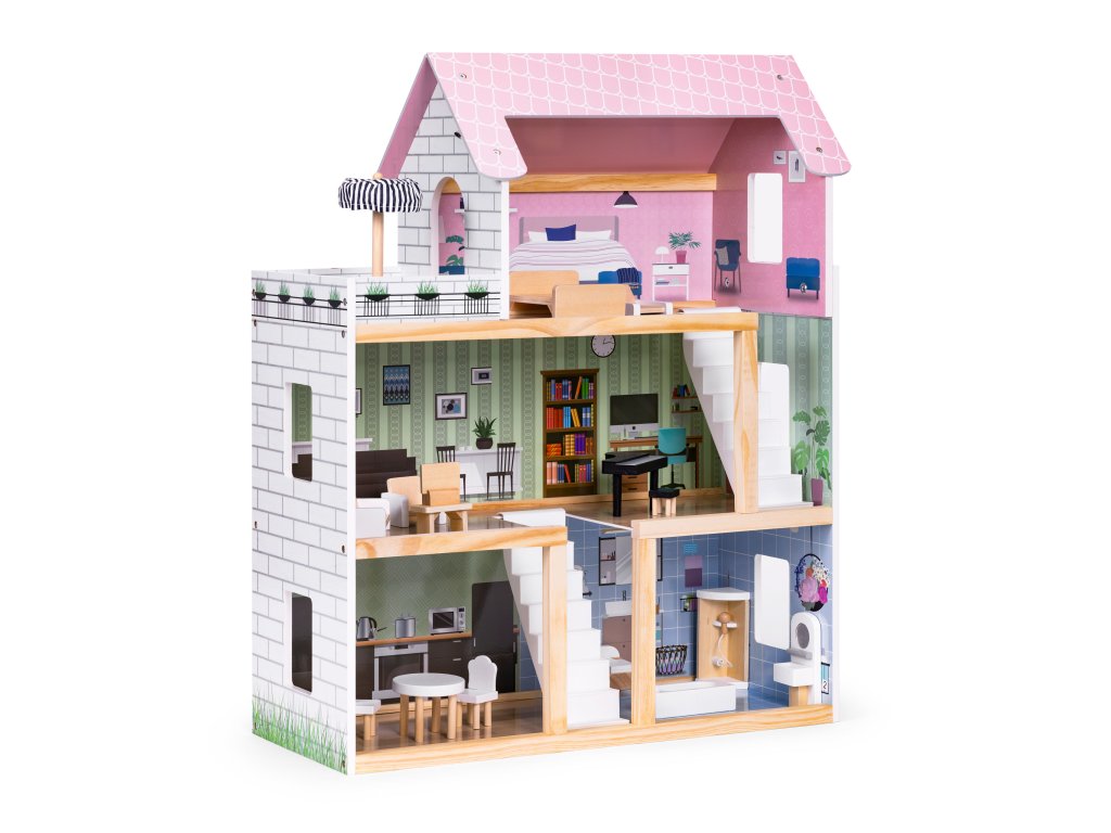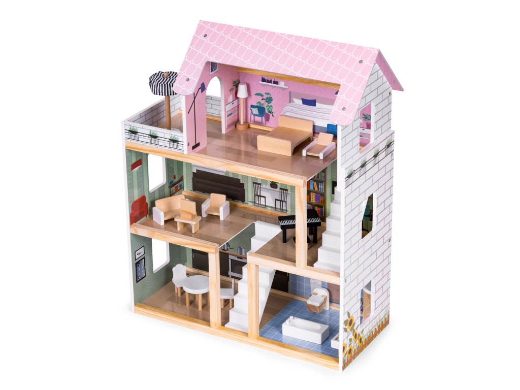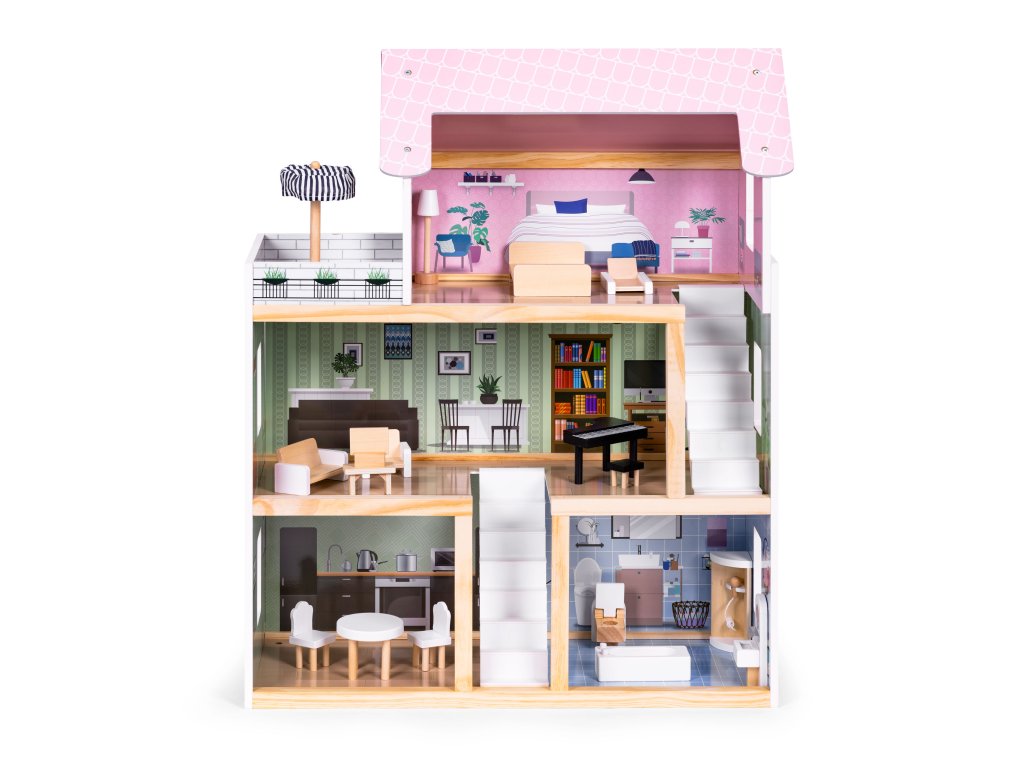 Domček pre bábiky od ECOTOYS vďačí za svoje čaro vhodne zvolenej farebnej schéme a špeciálne navrhnutým izbám. Vďaka tomu bude vyzerať skvele nielen v izbe vášho dieťaťa ale aj v obývacej izbe a potešila všetkých v dome.