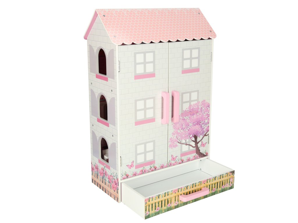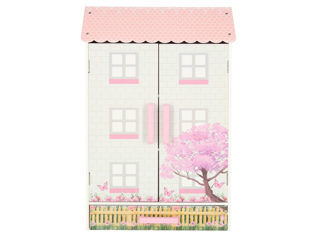Dřevěný domeček pro panenky Lulilo Papilio se zásuvkou a dveřmi růžový