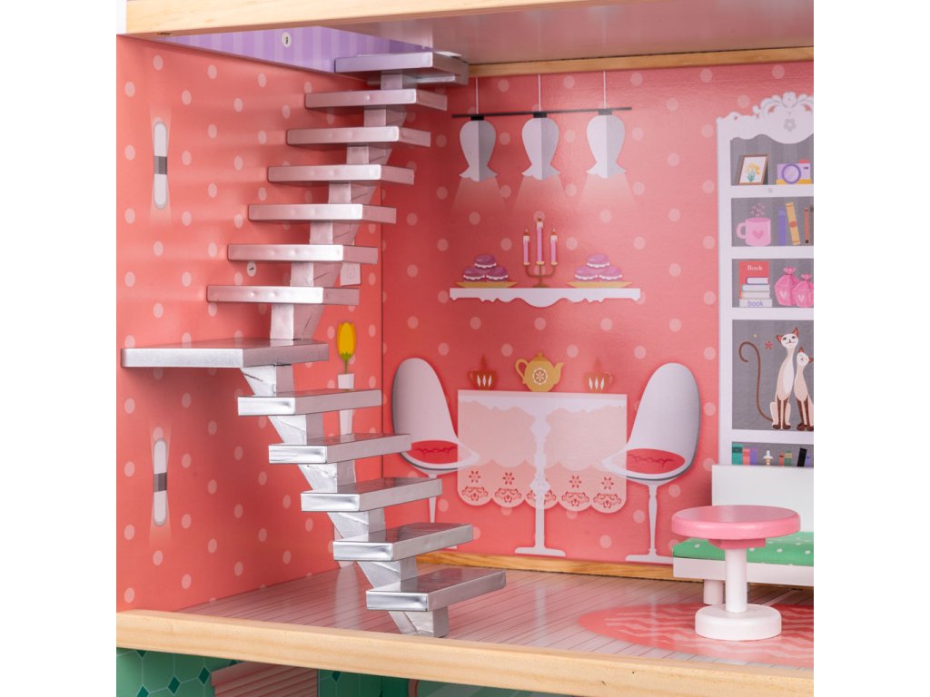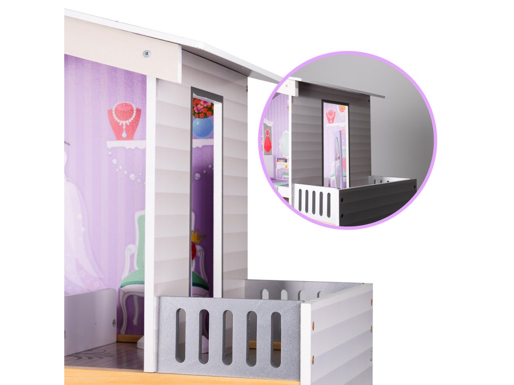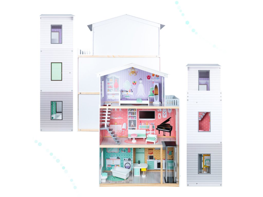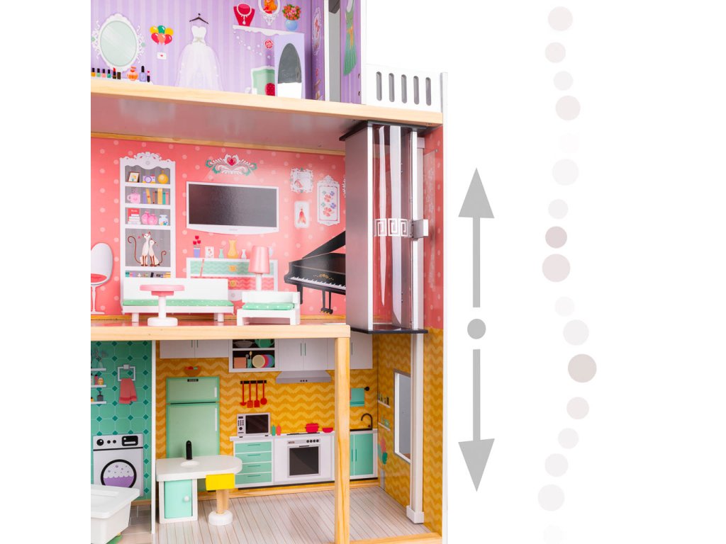 Jedinečný pastelový domeček pro panenky bude splněným dětským snem. Vejdou se do něj všechny oblíbené panenky, maskoti a figurky vašeho dítěte. obrovské dvoupatrové sídlo je vybaveno 4 samostatnými pokoji, balkonem a výtahem. V ve 4 pokojích najdete: