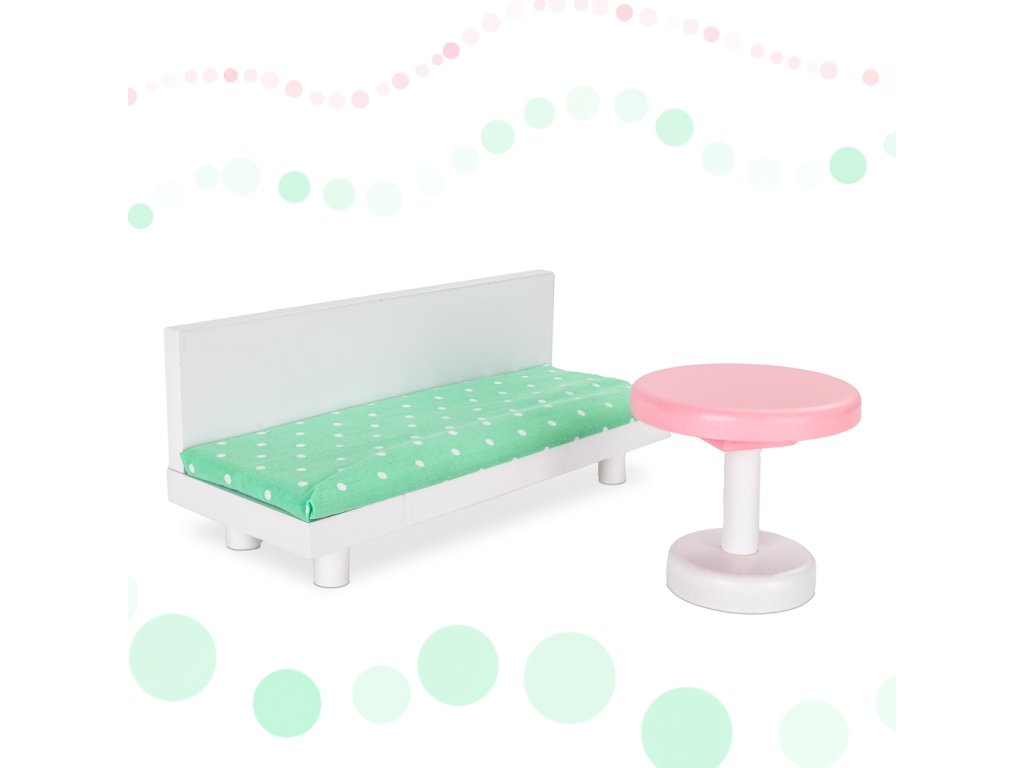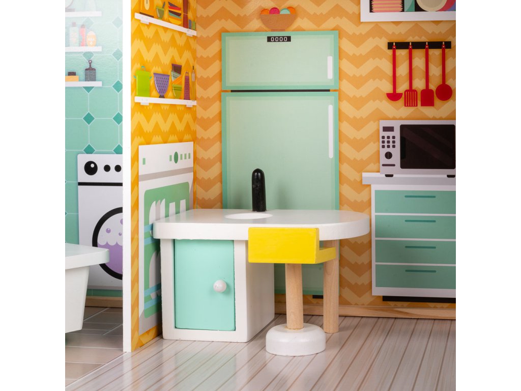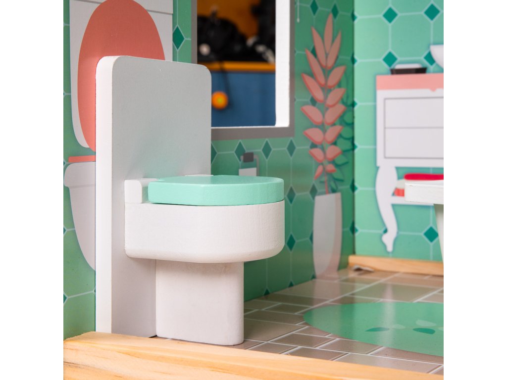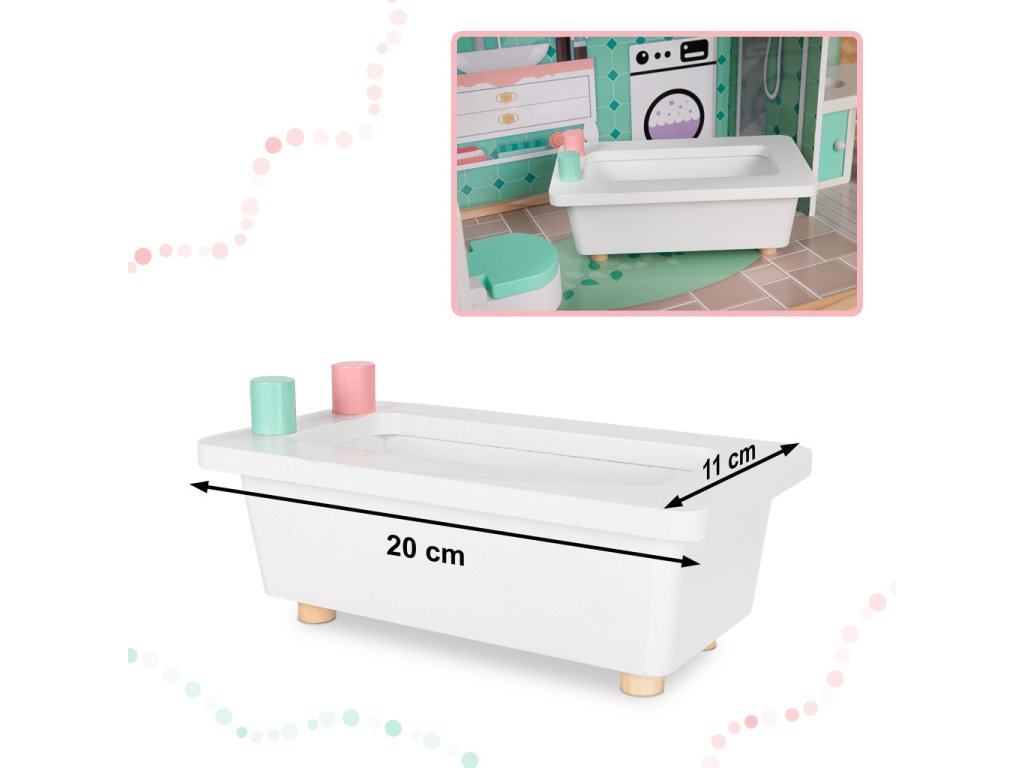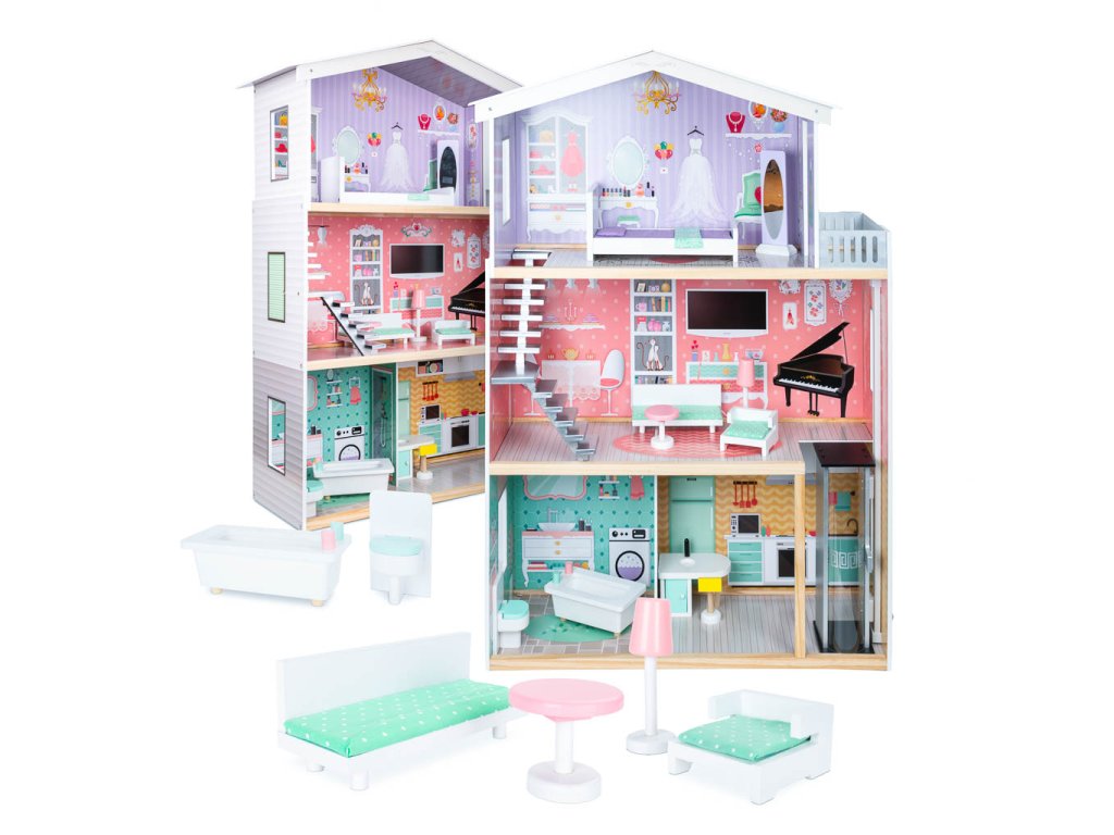 Dřevěný domeček pro panenky + nábytek pastelový 117cm