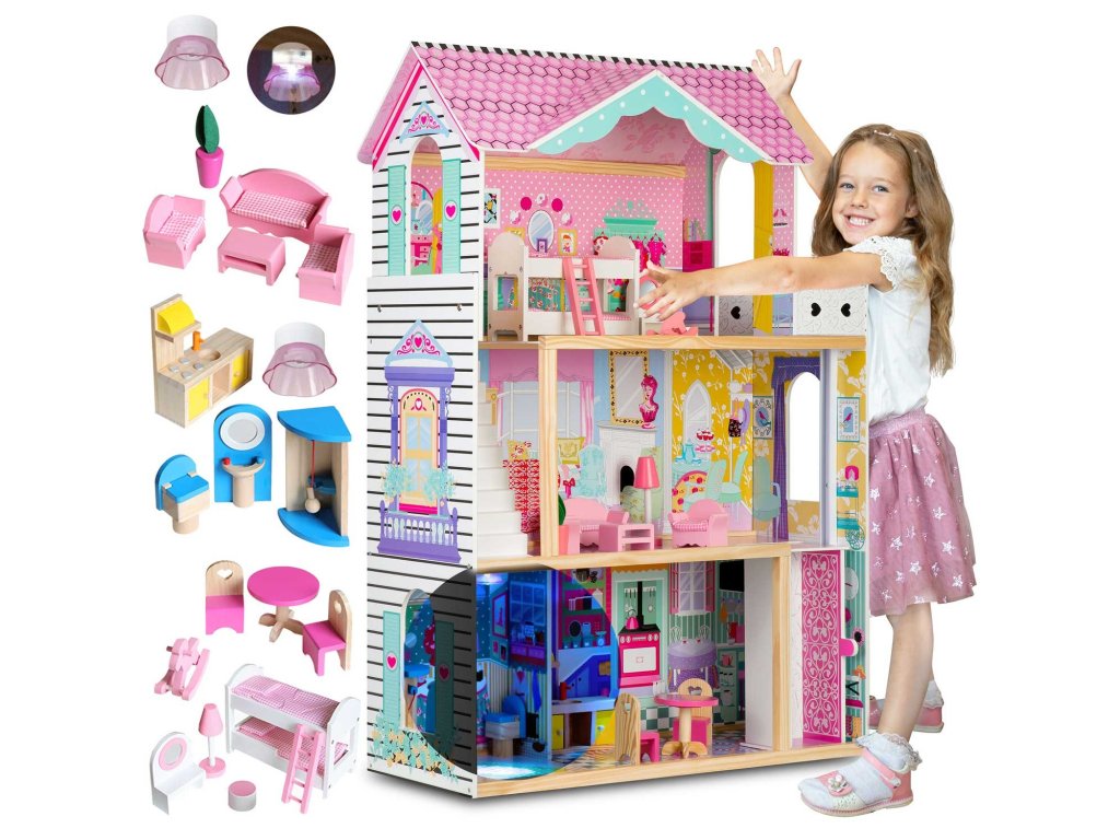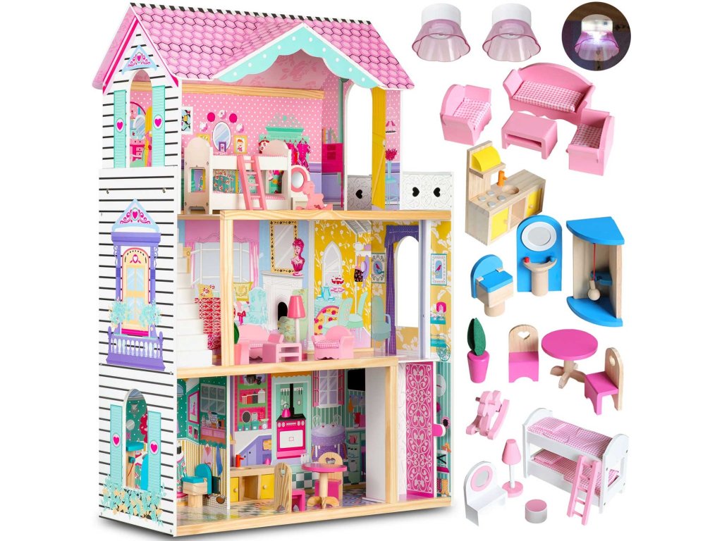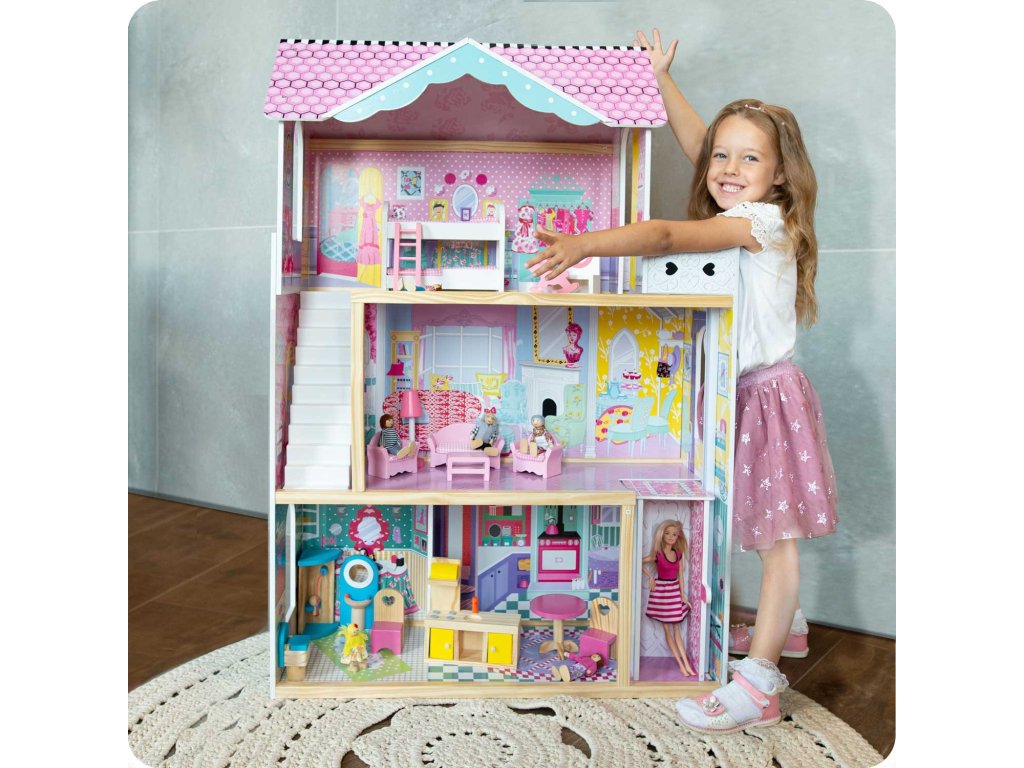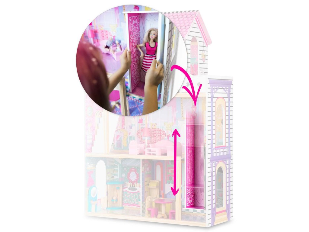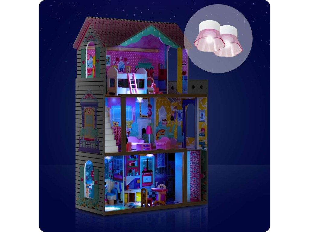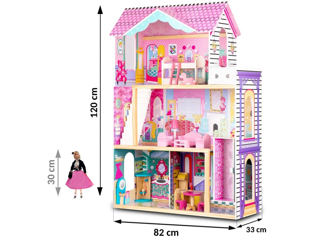 Dřevěný domeček pro panenky velký 3podlažní s výtahem a LED osvětlením