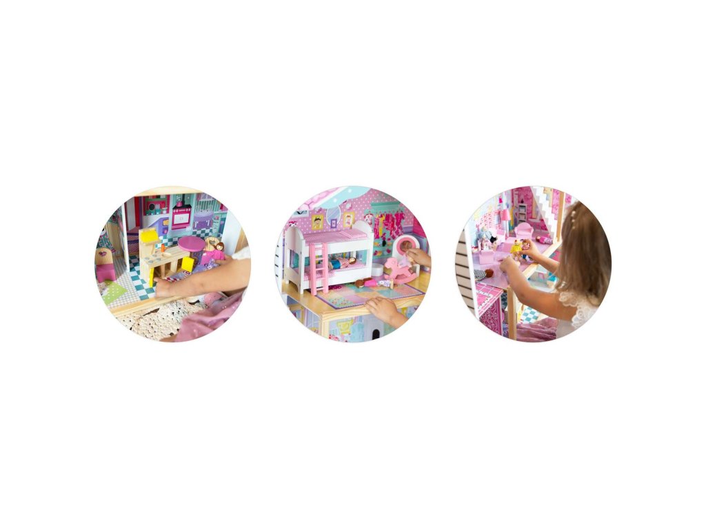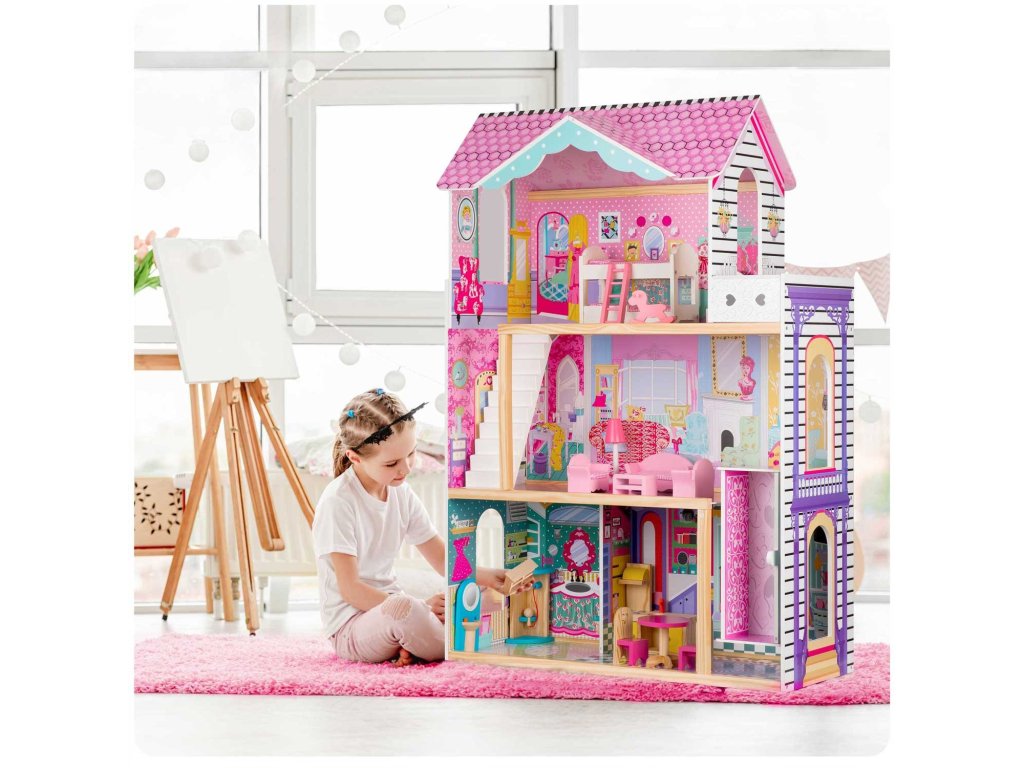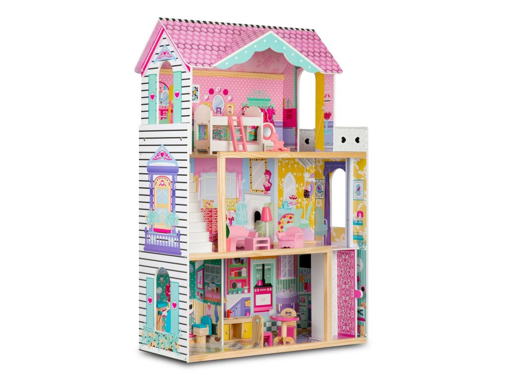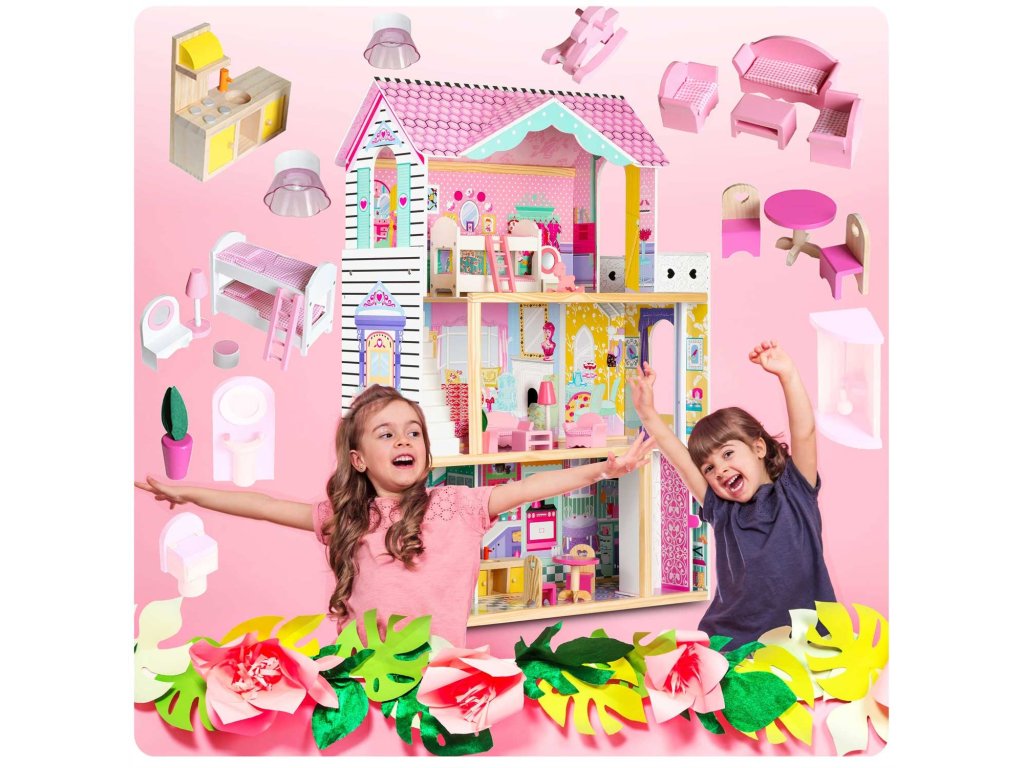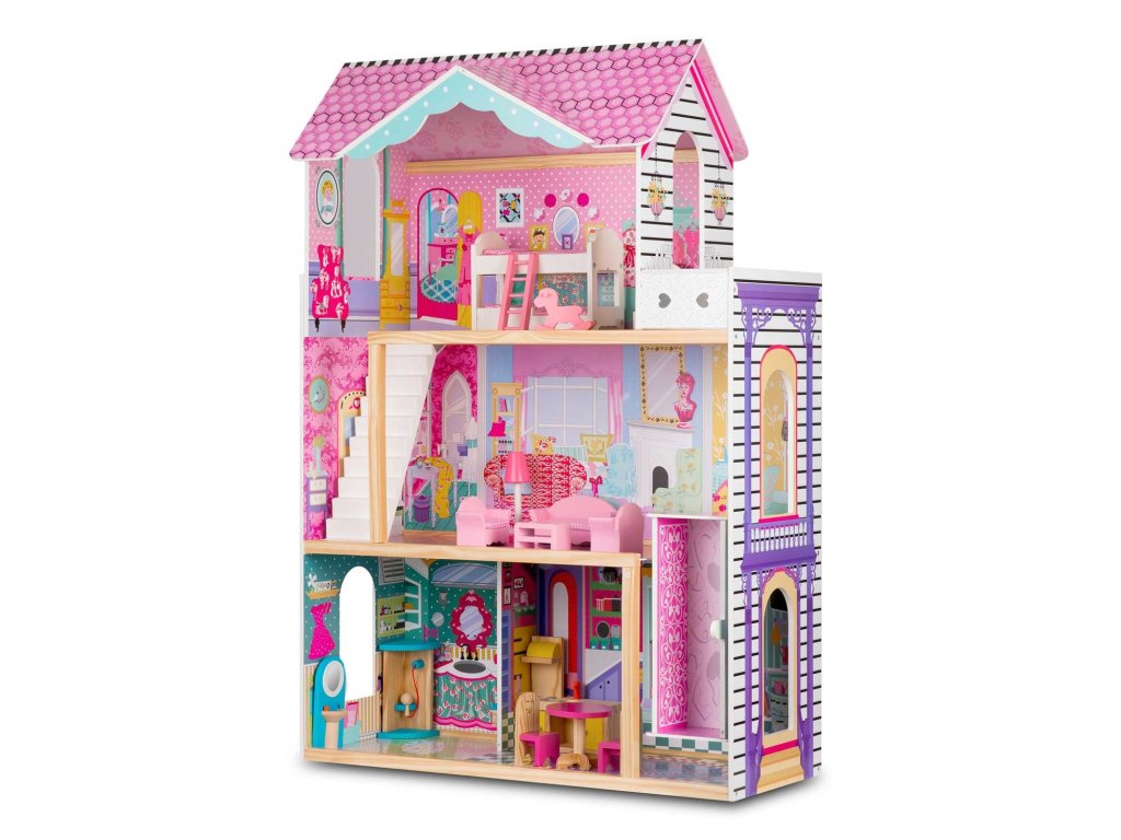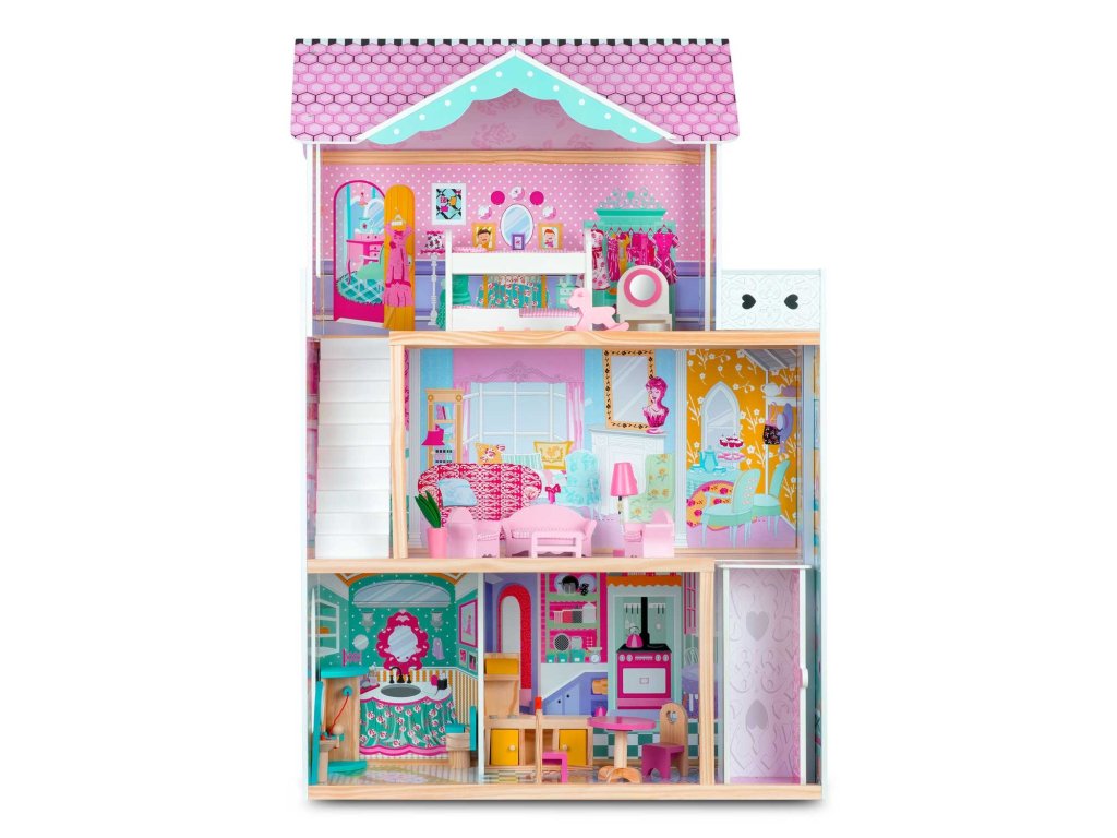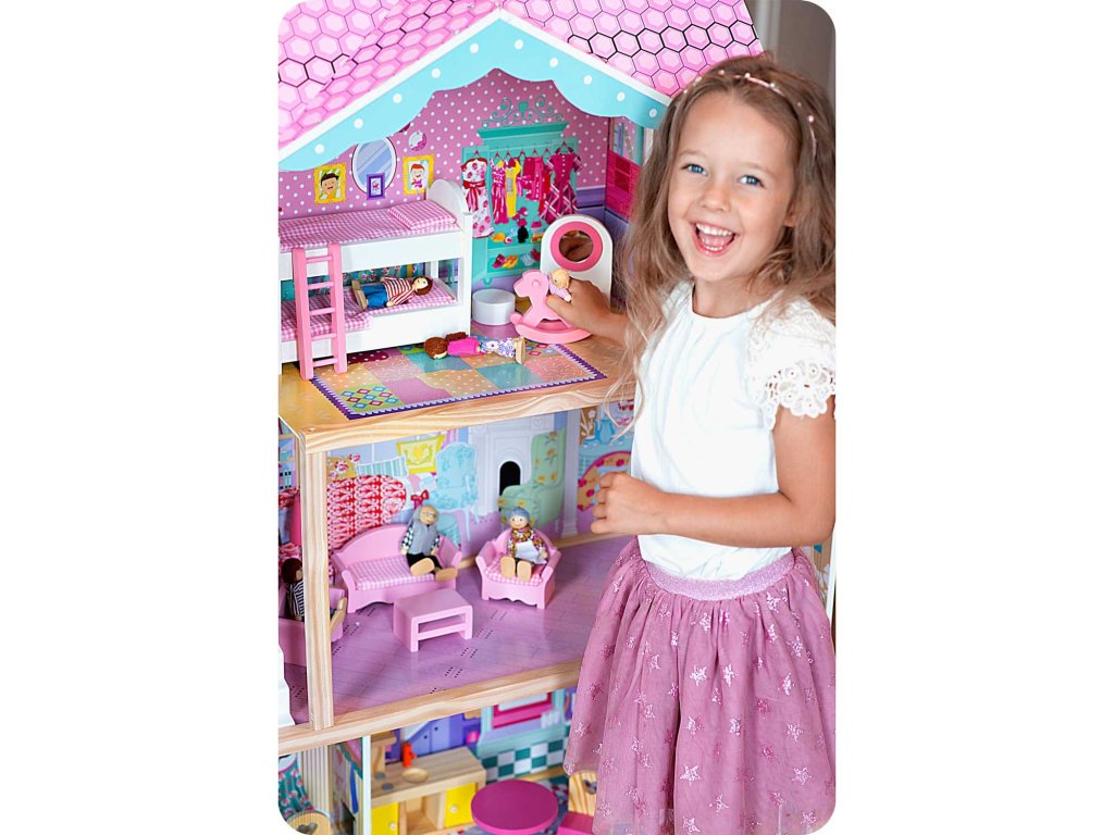 Dřevěný domeček pro panenky velký 3podlažní s výtahem a LED osvětlením