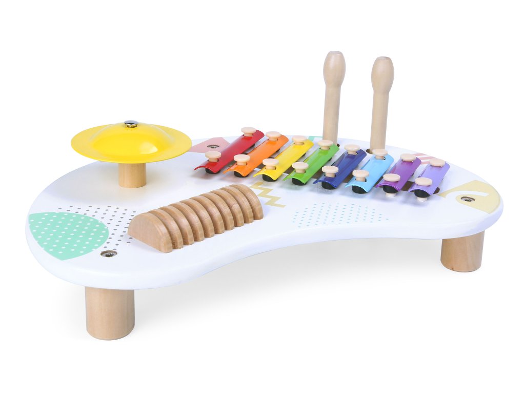 Drevený hudobný stolík s 3 nástrojmi ECOTOYS