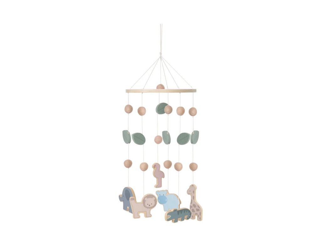 Náš rozkošný dřevěný kolotoč se zvířátky ze savany je ideální dekorací do dětského pokoje nad postýlku nebo přebalovací pult.