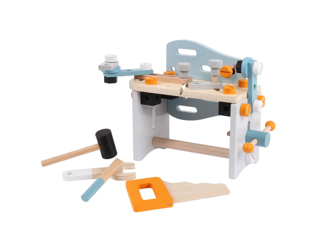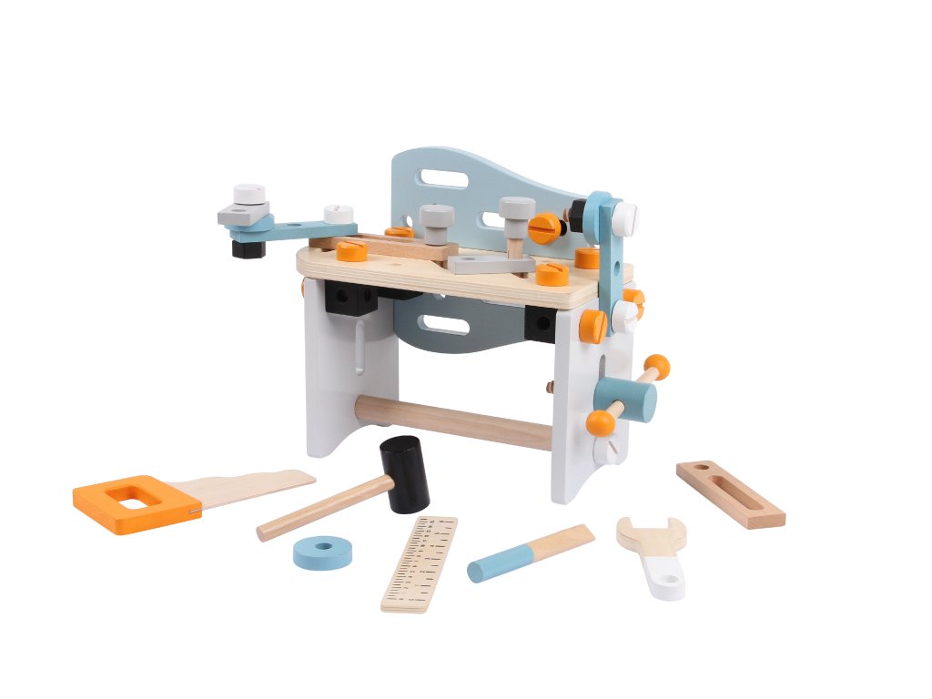 Drevený mini pracovný stôl s náradím – 52 dielov