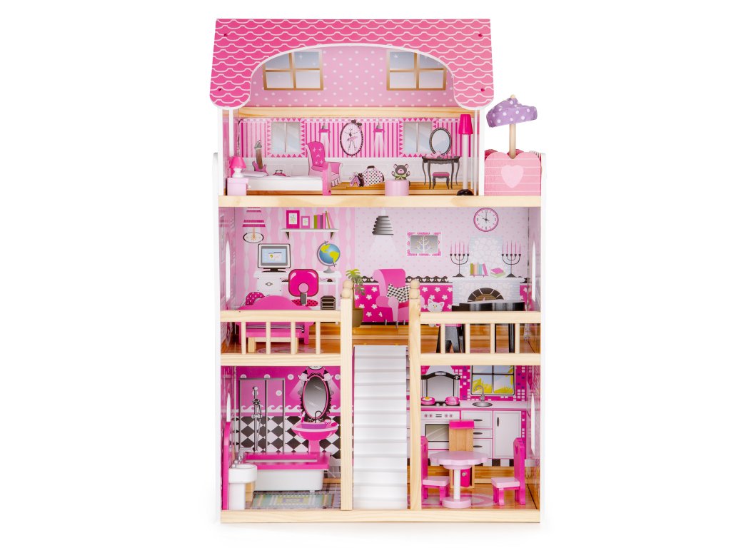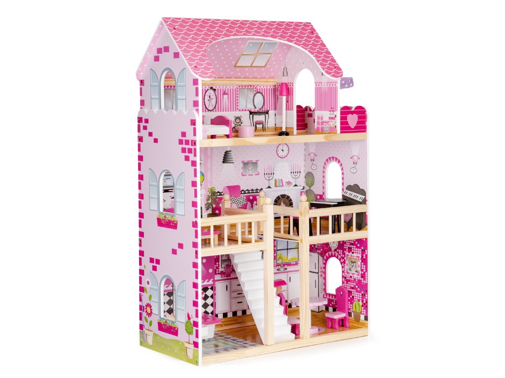 Domček pre bábiky od ECOTOYS vďačí za svoje čaro vhodne zvolenej farebnej schéme a špeciálne navrhnutým izbám. Vďaka tomu je rezidencia bude vyzerať skvele nielen v izbe vášho dieťaťa ale aj v obývacej izbe a potešila všetkých v dome.