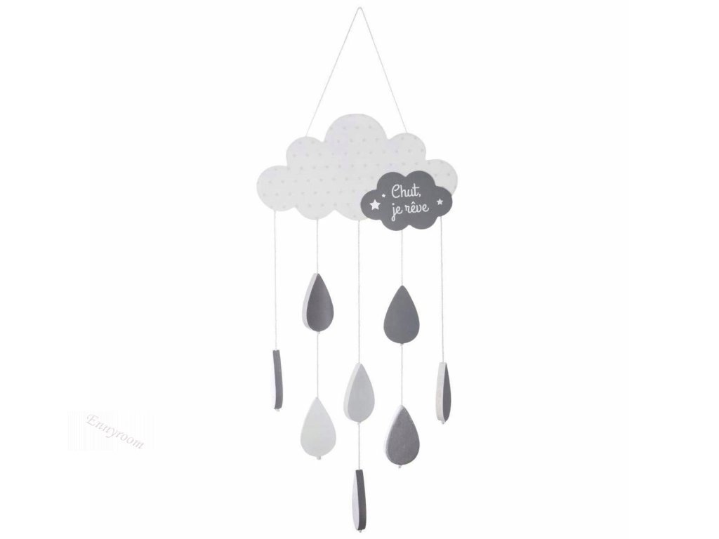 Dekorace dřevěný mrak. Dekorace do dětského pokoje, ve tvaru mraku s deštěm jeokouzlující výzdoba dětského pokoje.