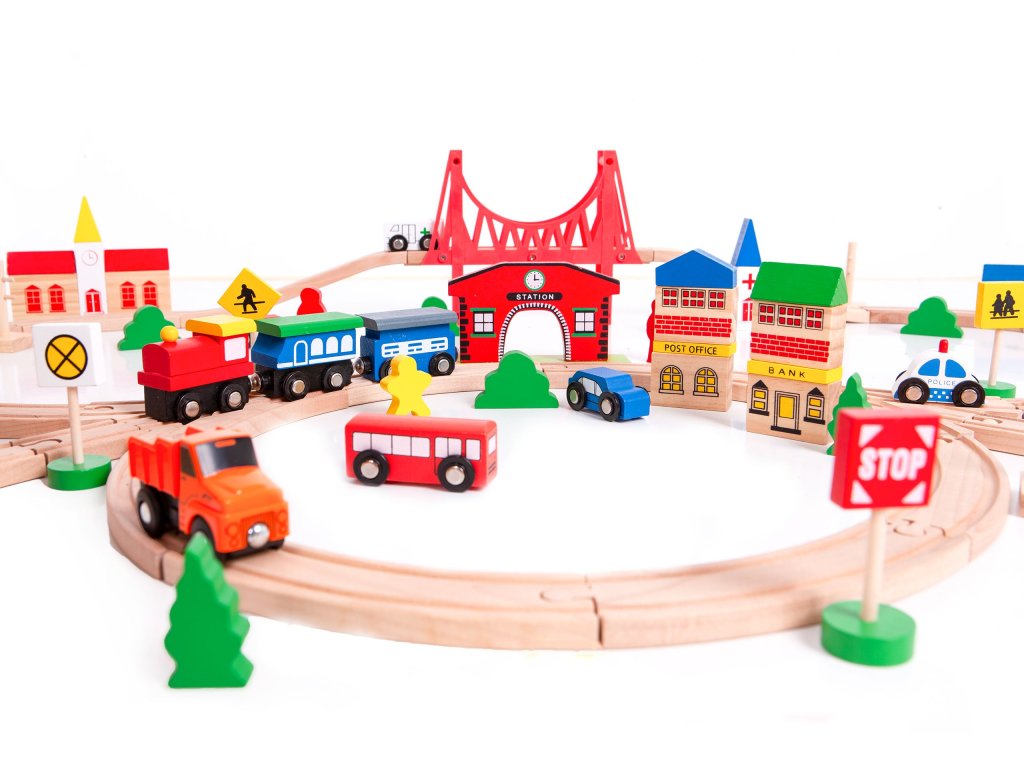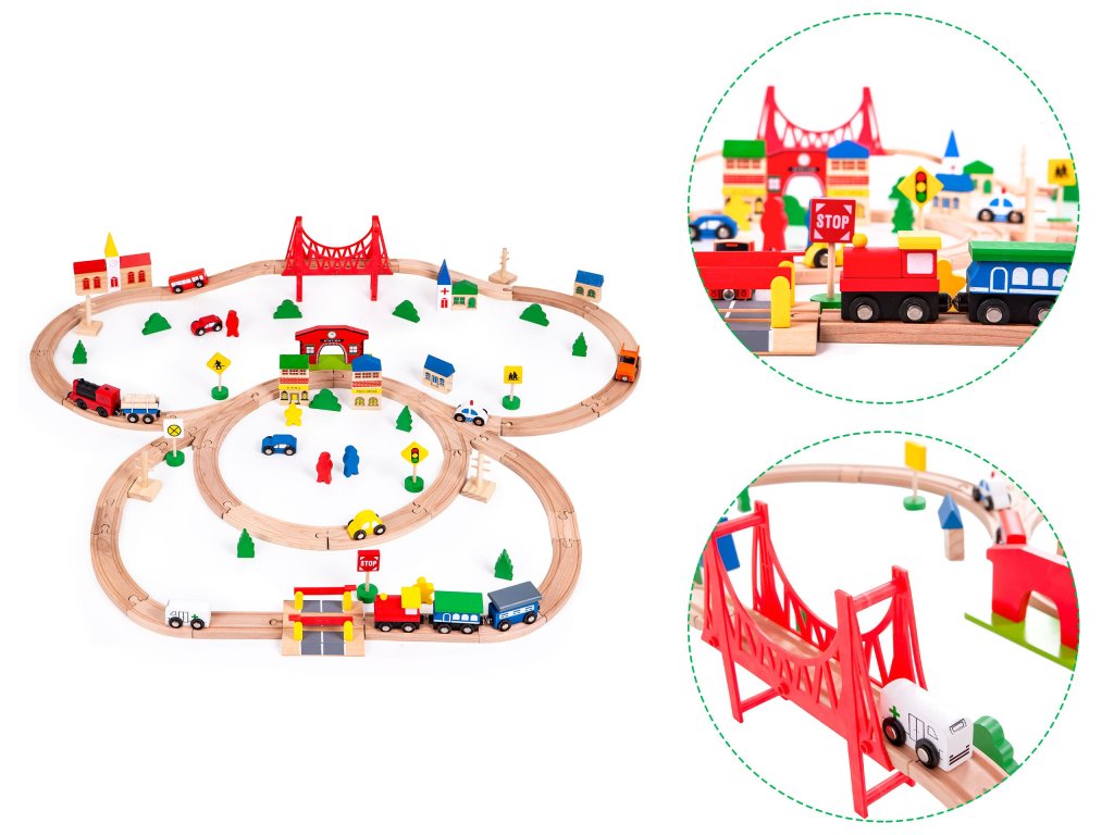 Dřevěný vláček na baterie 90 kusů ECOTOYS