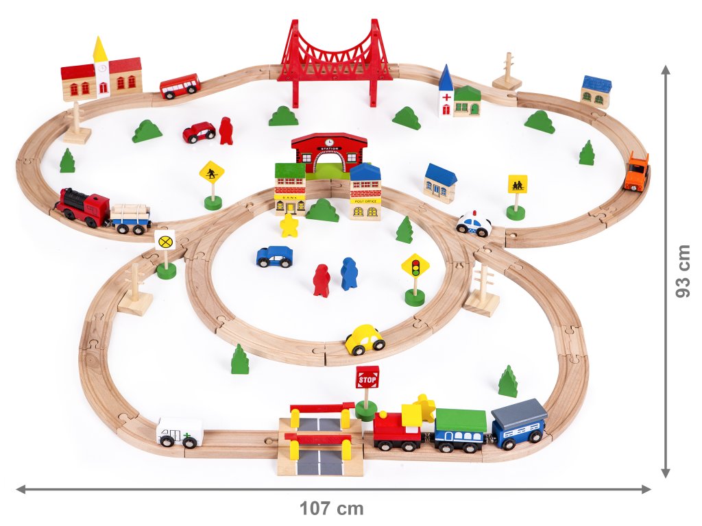 Sada obsahuje mnoho zajímavých prvků, jako jsou vozidla, dopravní značky a budovy. Koleje tvoří zajímavou trasu s mnoha zajímavými prvky, jako jsou viadukty a výhybky. Všechny prvky lze libovolně uspořádat - jediným omezením je vaše představivost....