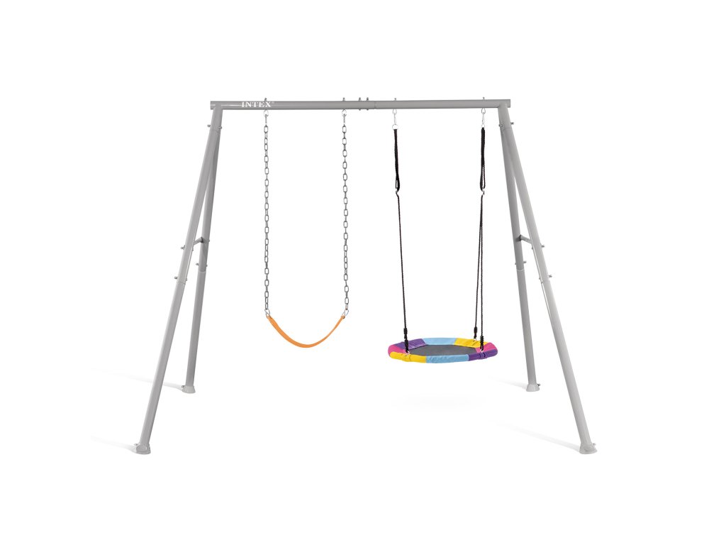 Hledáte způsob, jak vytvořitbezpečné hřiště v zahradě? Dvojitá zahradní houpačka INTEX 44126 je ideálním řešením pro rodiny s dětmi. Model kombinujeklasická dětská houpačka s flexibilním sedadlem a houpačkou Čapí hnízdo, která zaručujerozmanitost a potěšení. Svým barevným designem a ergonomií dokonale zapadne do každé zahrady a je určen pro až tři děti najednou. Sázka na dětská zahradní houpačka INTEX a proměňte svou zahradu v opravdový ráj na hraní!