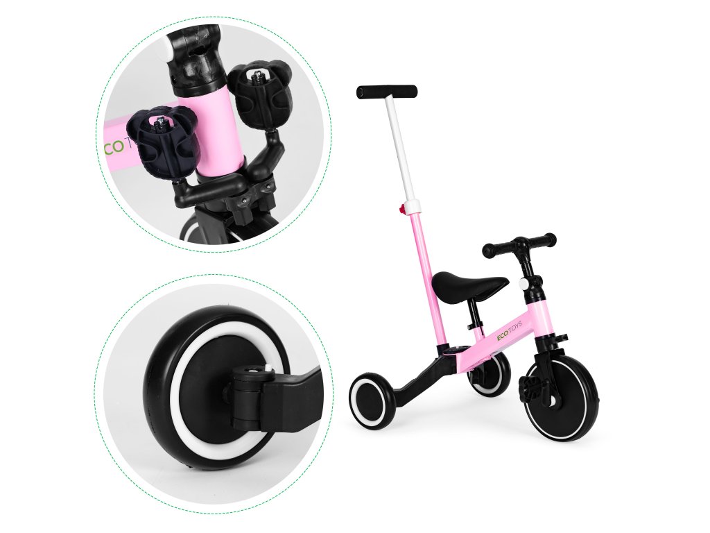 Možnost přestavba běžeckého kola na tradiční jízdní kolo poháněné pedály umožňuje dítěti začít lekce bezpečné jízdy na tomto typu kola. Měkké sedlo a protiskluzové rukojeti poskytují hodiny pohodlné hry . Kola vozidla jsou vyrobena z plast EVA, prostřednictvím kterých jsou odolné proti propíchnutí. Díky tomu je kolo vhodné pro použití obě stránky doma a na procházkách.