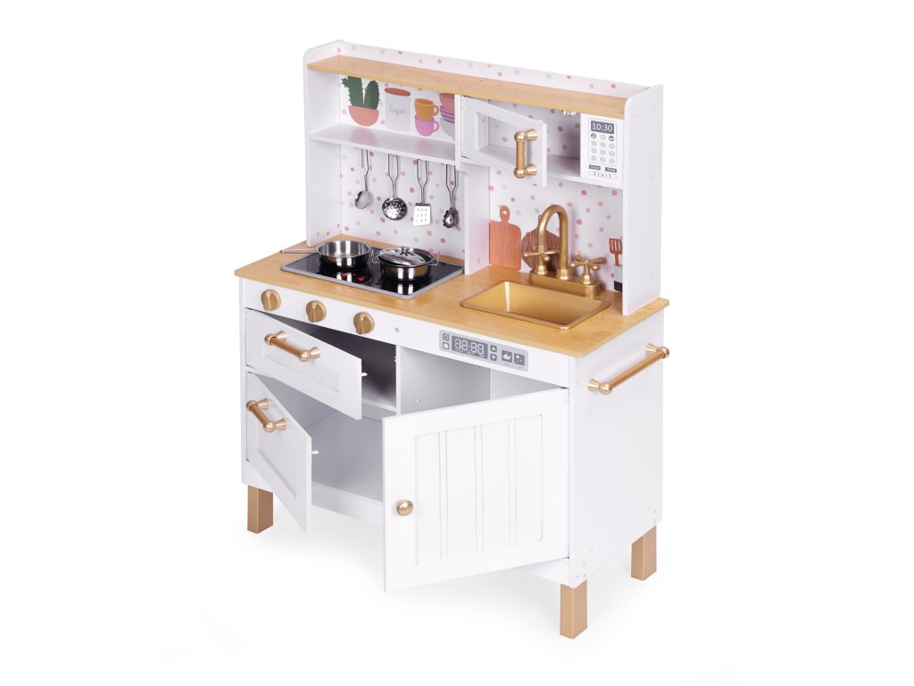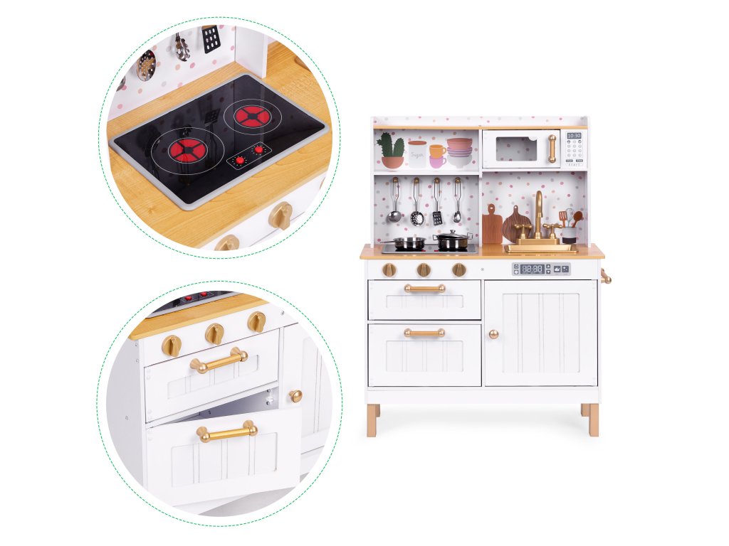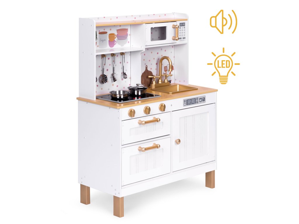 ECOTOYS Dětská velká dřevěná kuchyňka se světlem a zvukem