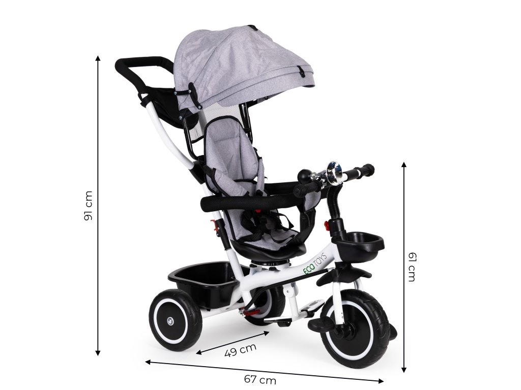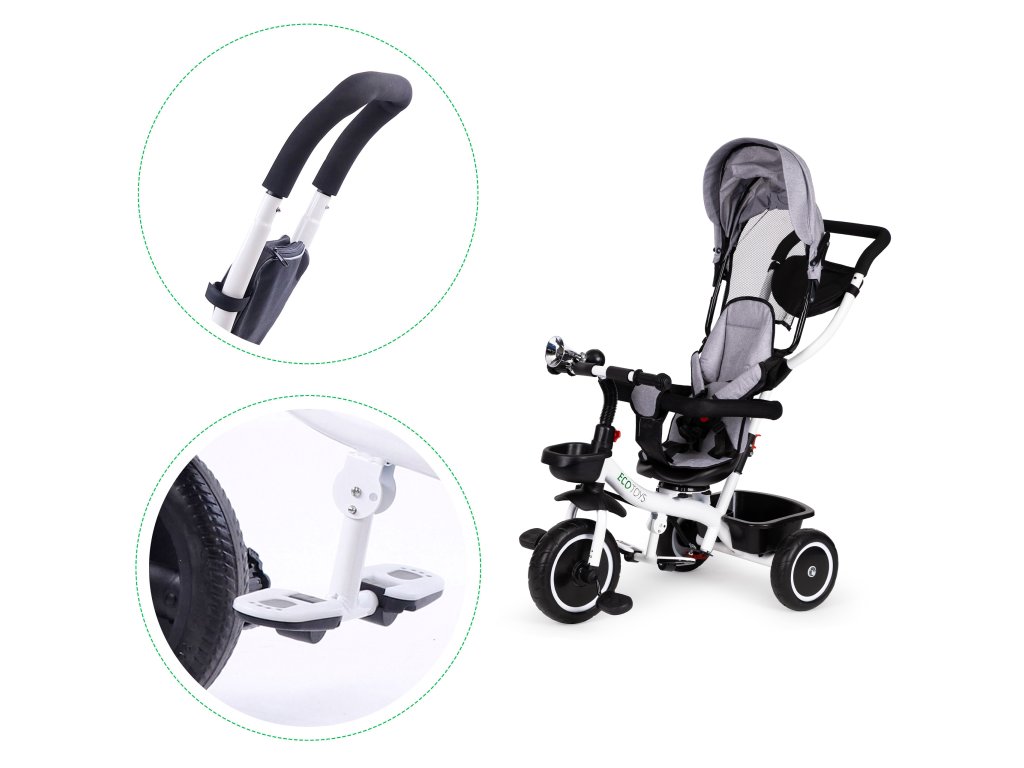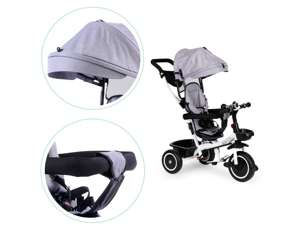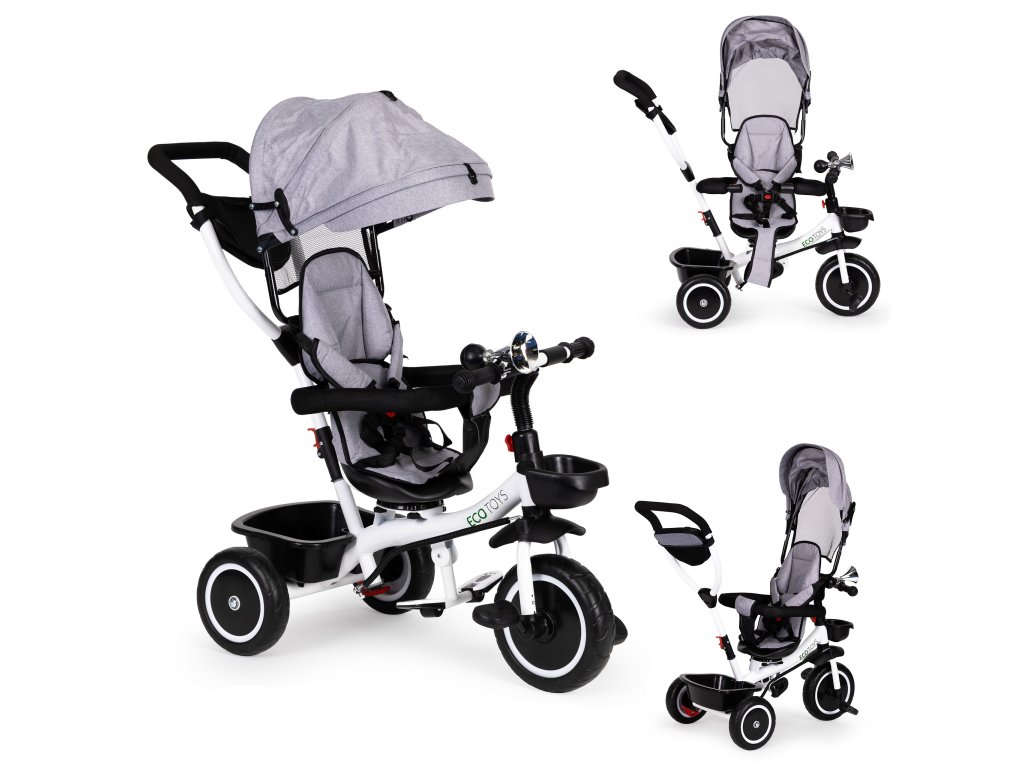 ECOTOYS trojkolka s otočným sedadlom 360° – šedá