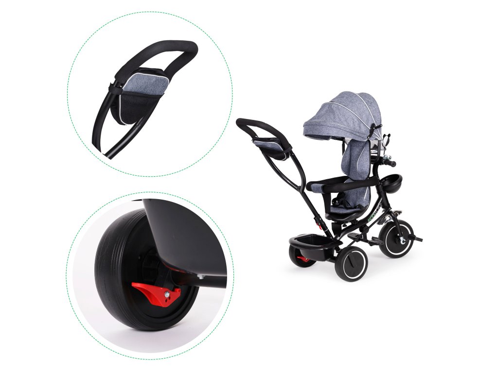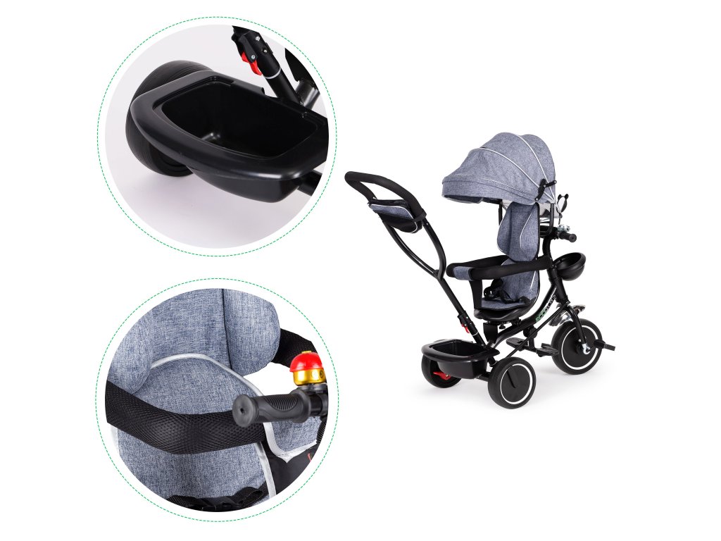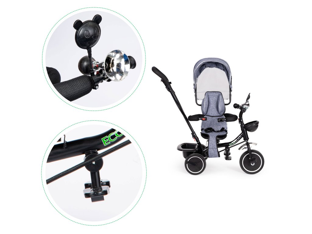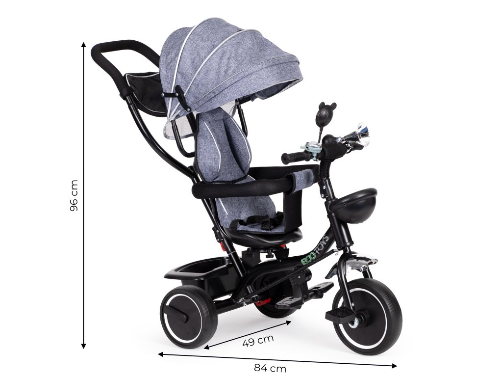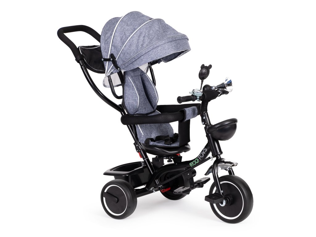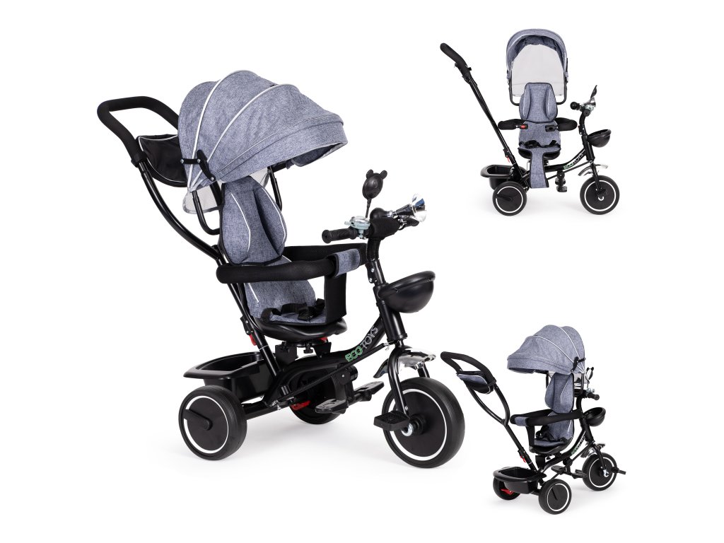 ECOTOYS trojkolka s otočným sedadlom a strieškou, šedá