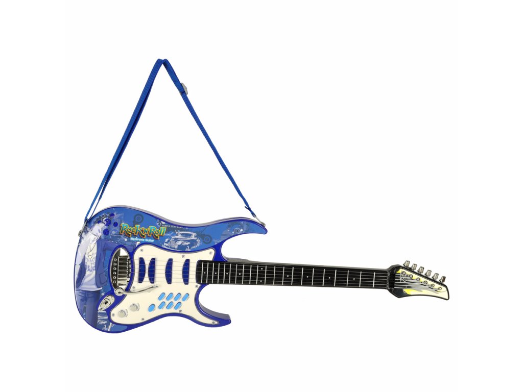 Elektrická kytara s příslušenstvím je ideální hračkou pro malé hudebníky, kteří sní o velkém pódiu. Sada obsahuje kytaru, zesilovač a mikrofon na nastavitelném stojanu.