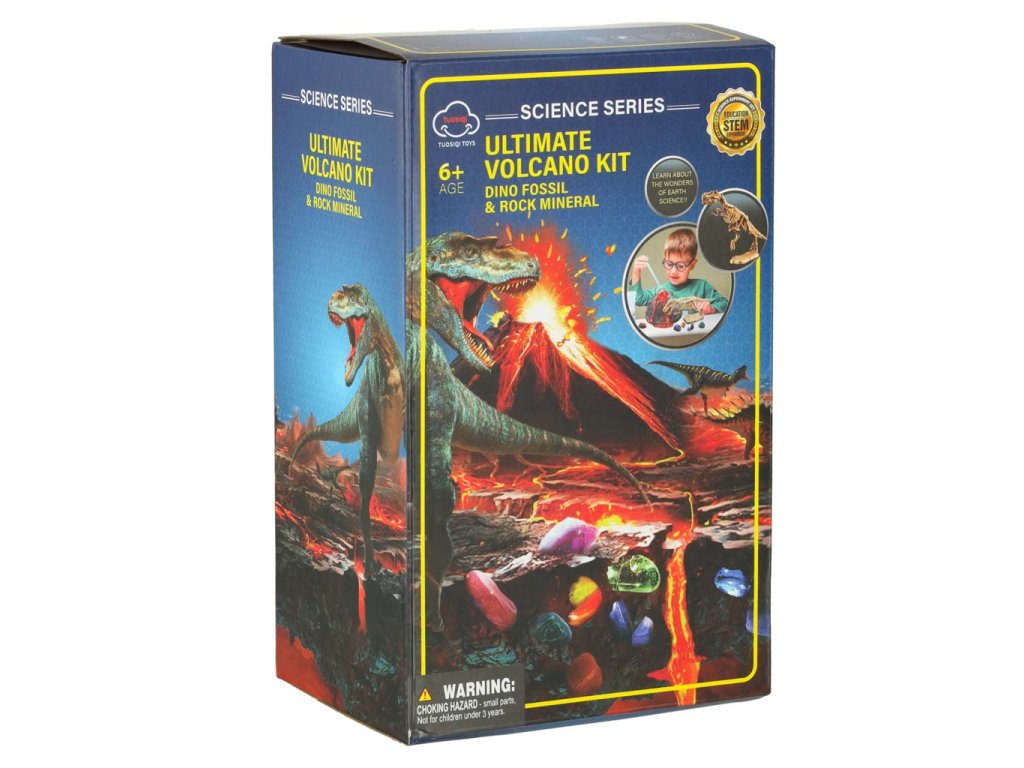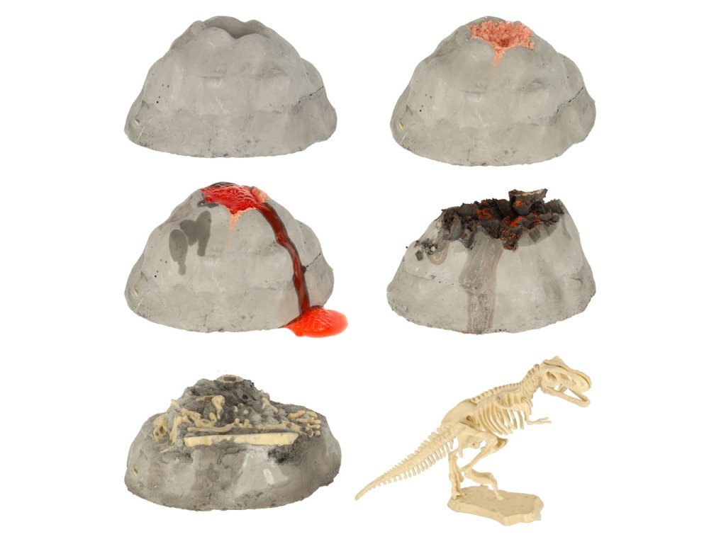 Vzdělávací sada sopka s dinosaury spojuje dva fascinující světy: úžasné chemické experimenty a zábavu s dinosaury. Po přidání ingrediencí (kyselina citronová a hydrogenuhličitan sodný) dítě aktivuje experimentovat s odstřelováním sopky a sleduje, jak magic sopka bublá a chrlí pěnu jako skutečná sopka! Ale v bezpečné a věku přiměřené podobě.