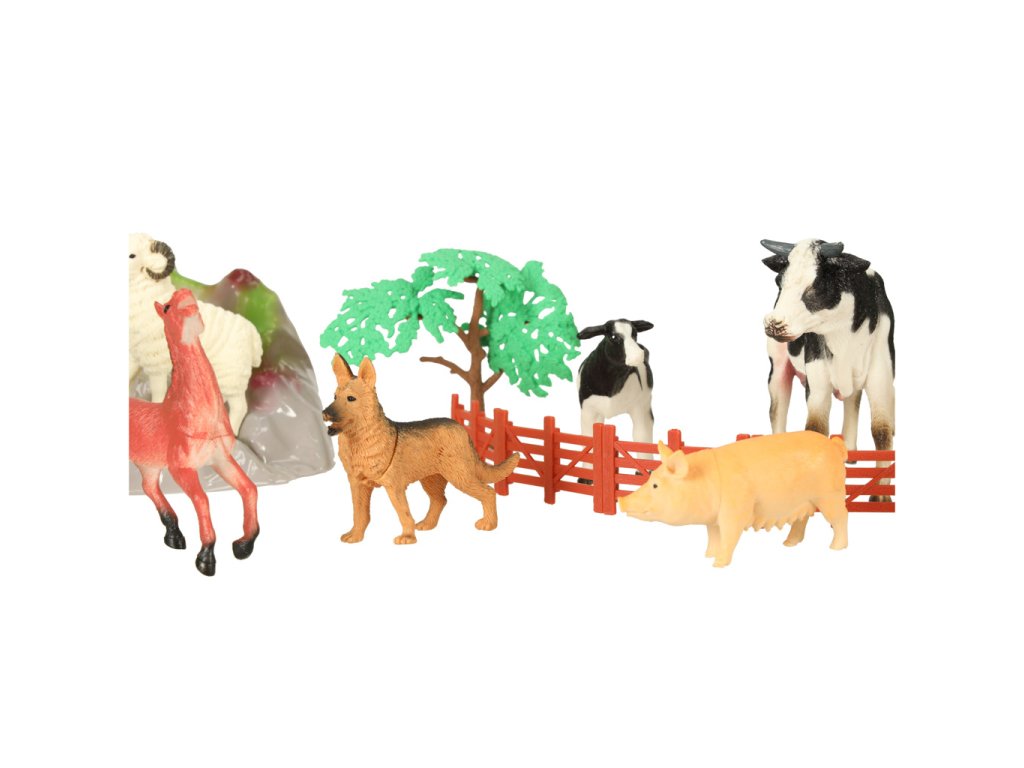 Figurky hospodářských zvířat 7ks + podložka a příslušenství