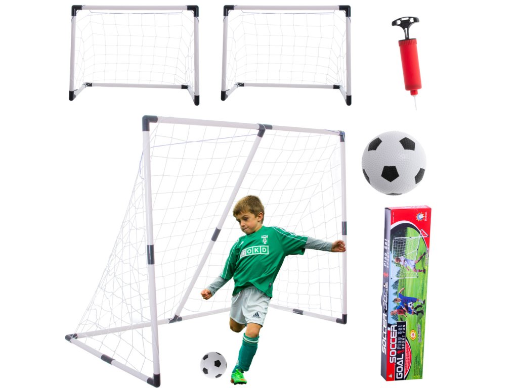 Abyste mohli začít hrát hned po vybalení z krabice, najdete v ní nejen fotbalové branky, ale také fotbalový míč a pumpičku!