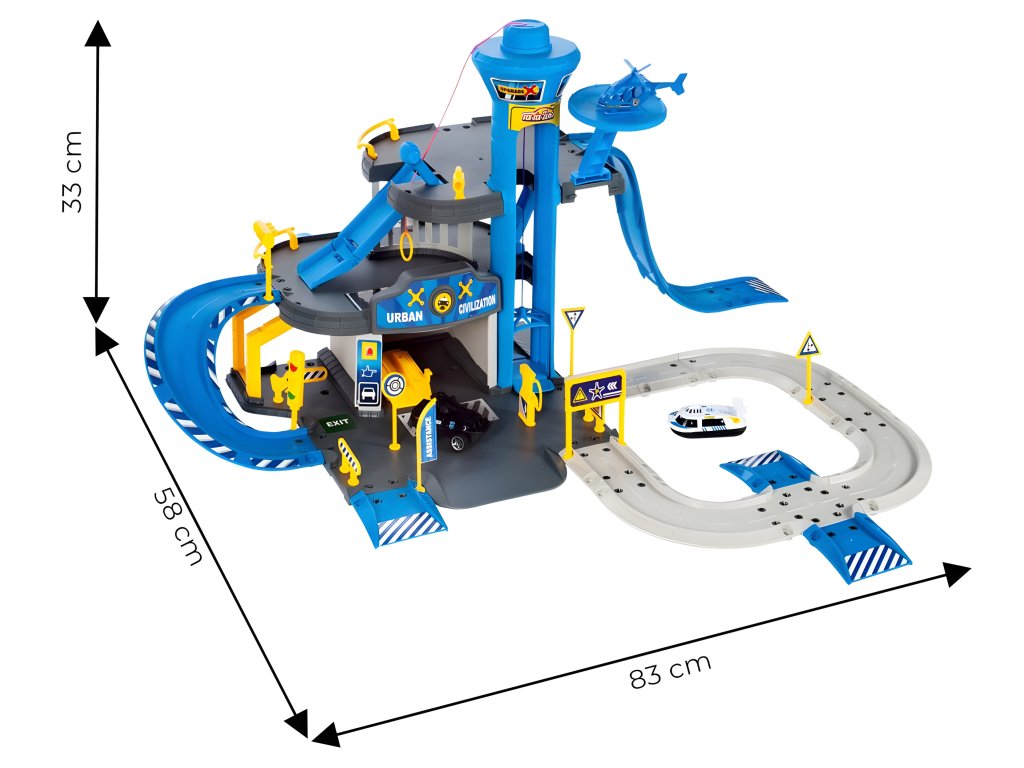 Garáž policejní stanice 3 podlaží s výtahem pro auta + vrtulník 74 prvků