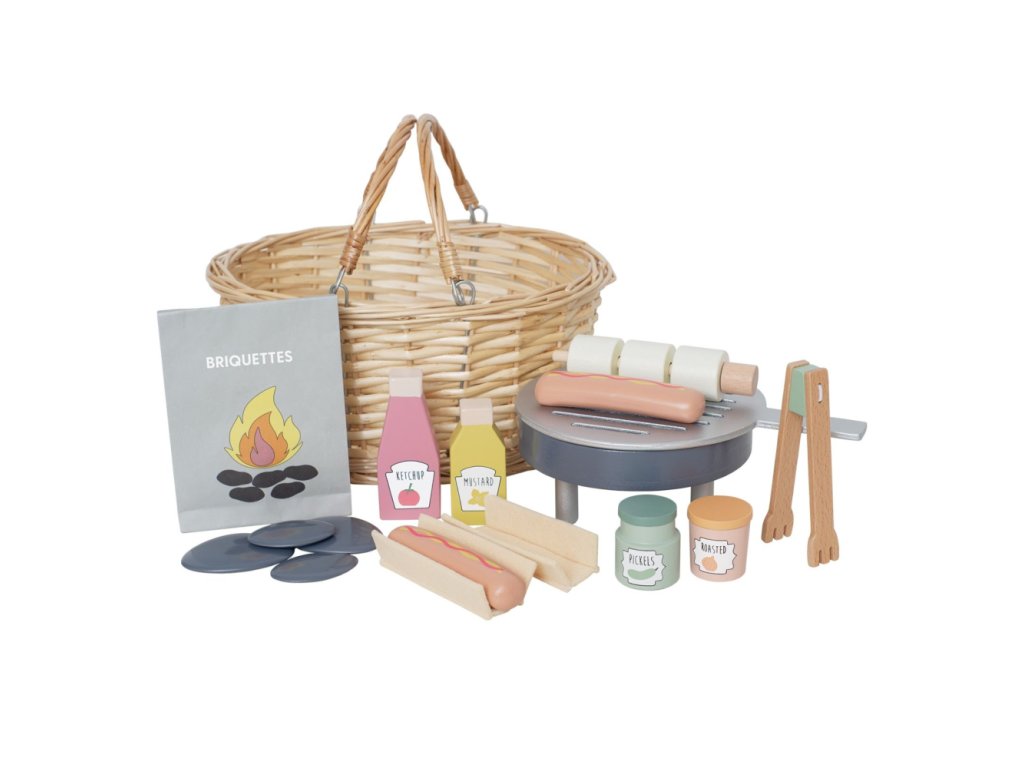 S grilovacím košem JaBaDaBaDo si užijete dokonalý piknik v přírodě. Obsahuje gril, brikety, klobásy, chléb, omáčky a grilovací náčiní. Kvalitní dřevo, 29 x 21 x 14 cm. Věk: 3+. Udělejte si chutný piknik ve velkém stylu!