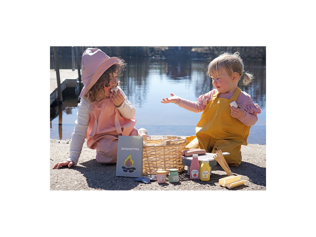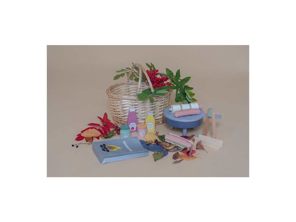 Nyní můžete konečně vyrazit do lesa a grilovat s přáteli. Grilovací koš od JaBaDaBaDo obsahuje vše, co potřebujete. Tak si sbalte tašku a vyrazte rovnou do lesa. Až vám vyhládne, je čas rozpálit gril. Co takhle párek v rohlíku s bostonskou okurkou a osmaženou cibulkou. Můžete přidat kečup a hořčici. Po jídle je čas na grilovaný marshmallow. Mňam! Košík na grilování obsahuje následující položky.1 košík1 gril s odnímatelným grilovacím roštem1 sáček se 4 briketami1 láhev kečupu1 láhev hořčice1 šálek bostonských okurek1 šálek opečené cibule2 klobásy2 chleby na párek v rohlíku1 kleště na grilování1 špíz se 3 sypkými marshmallow