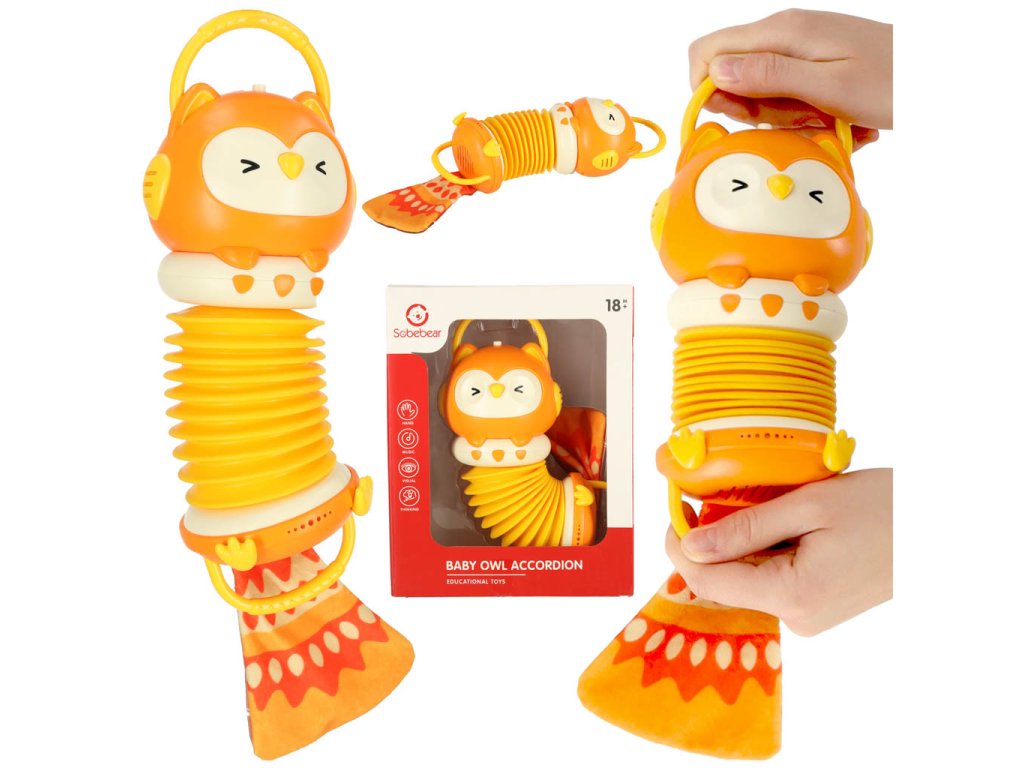 AKORDEON HARMONIE PRO DĚTI ORANŽOVÁ SOVA HRAJÍCÍ POD VEDENÍM 30CM