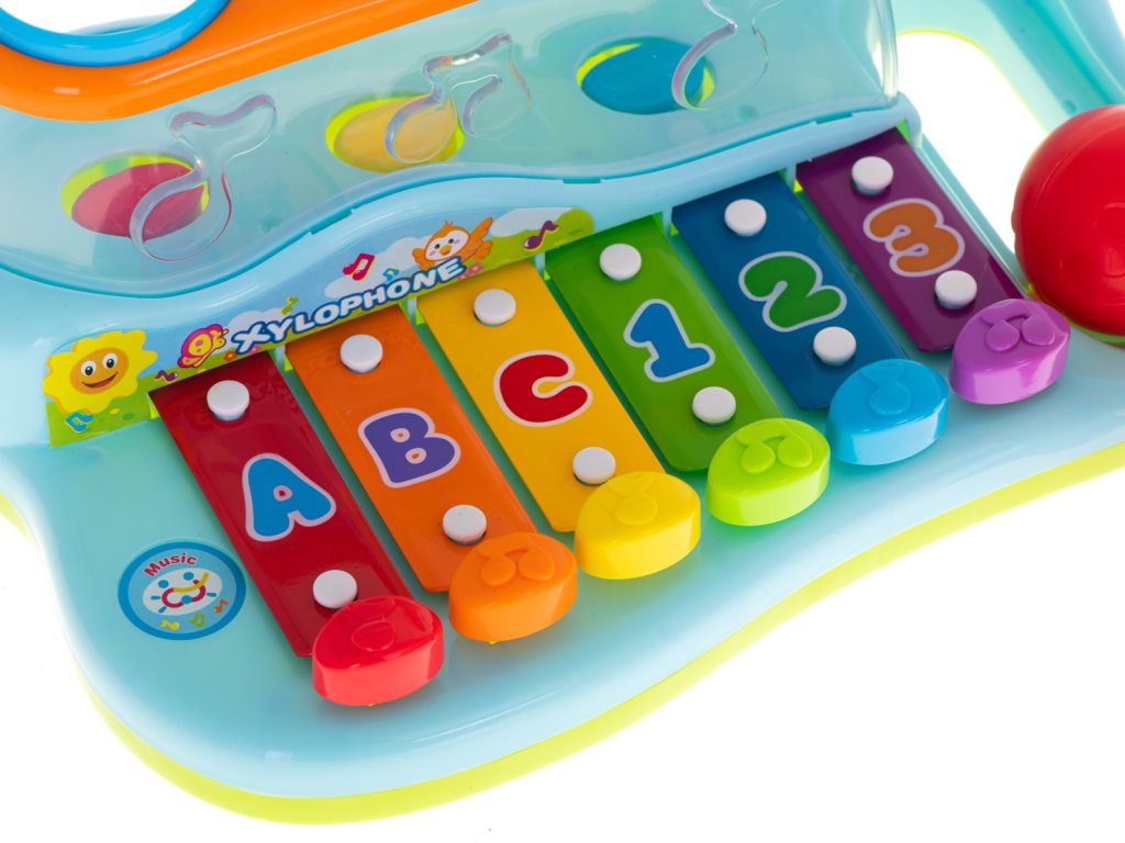Na horní straně xylofonu jsou písmena a číslice, které označují různé zvuky.