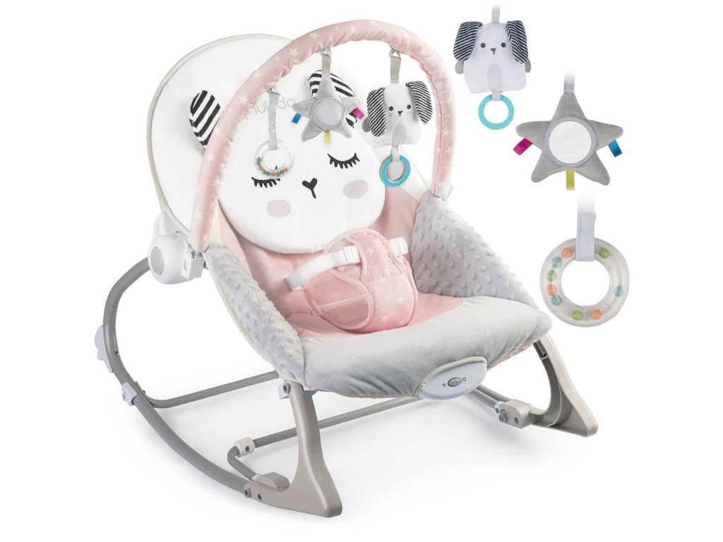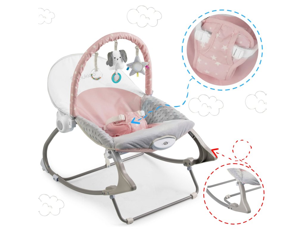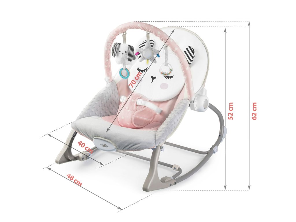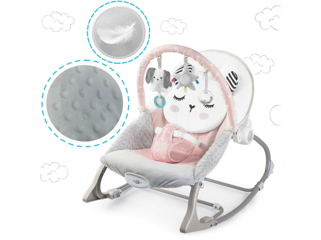 Lehátko je vybavené odnímateľnou čelenkou s pripojenými šuštiacimi hračkami.... Tie vaše dieťa zabavia, zatiaľ čo vy budete relaxovať. Tieto jedinečné hračky stimulovať videnie a rozvíjať hmat.