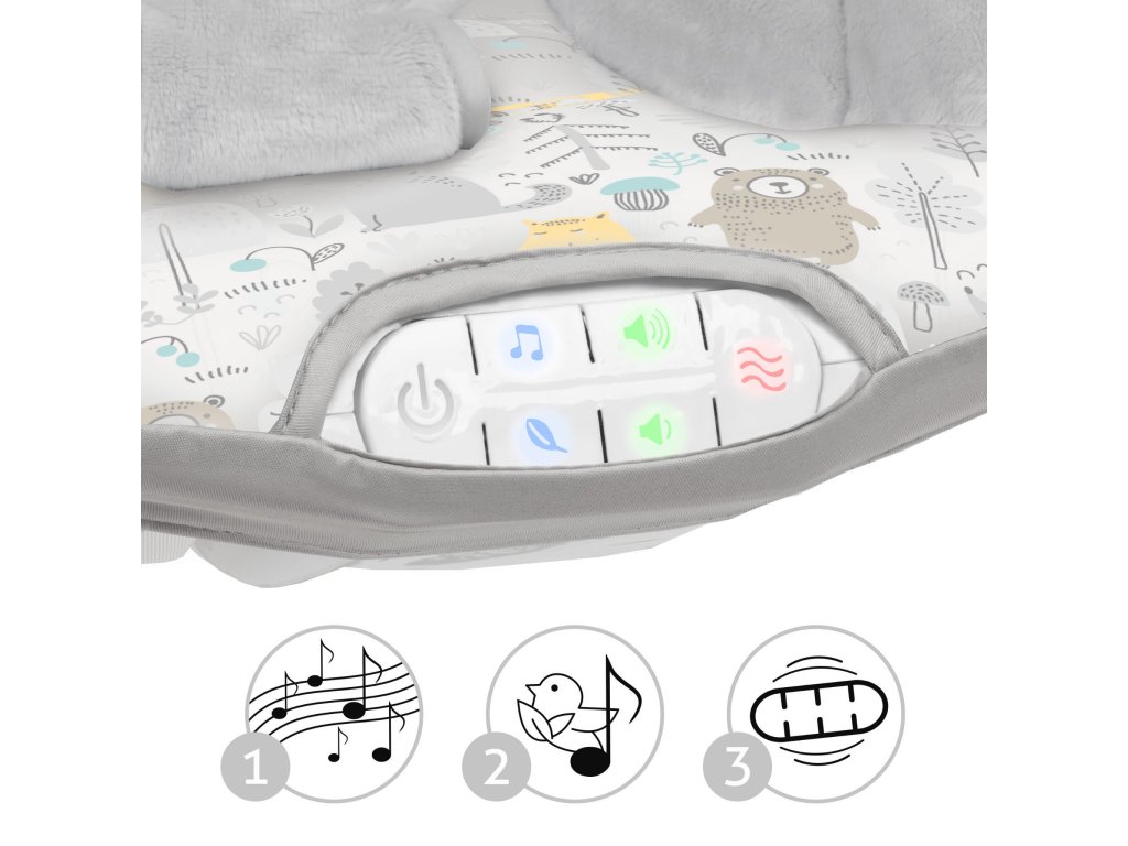 Typ: Houpací křeslo Věk dítěte: 0+ Maximální zatížení: 9 kg Materiál: Rám - ocel, potah - polyester, plyšová tkanina Balení:53,5 x 38,5 x 8,2 cm Napájení: 4x baterie AA (nejsou součástí dodávky) |