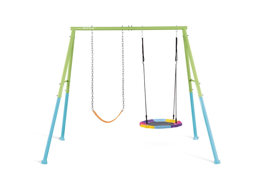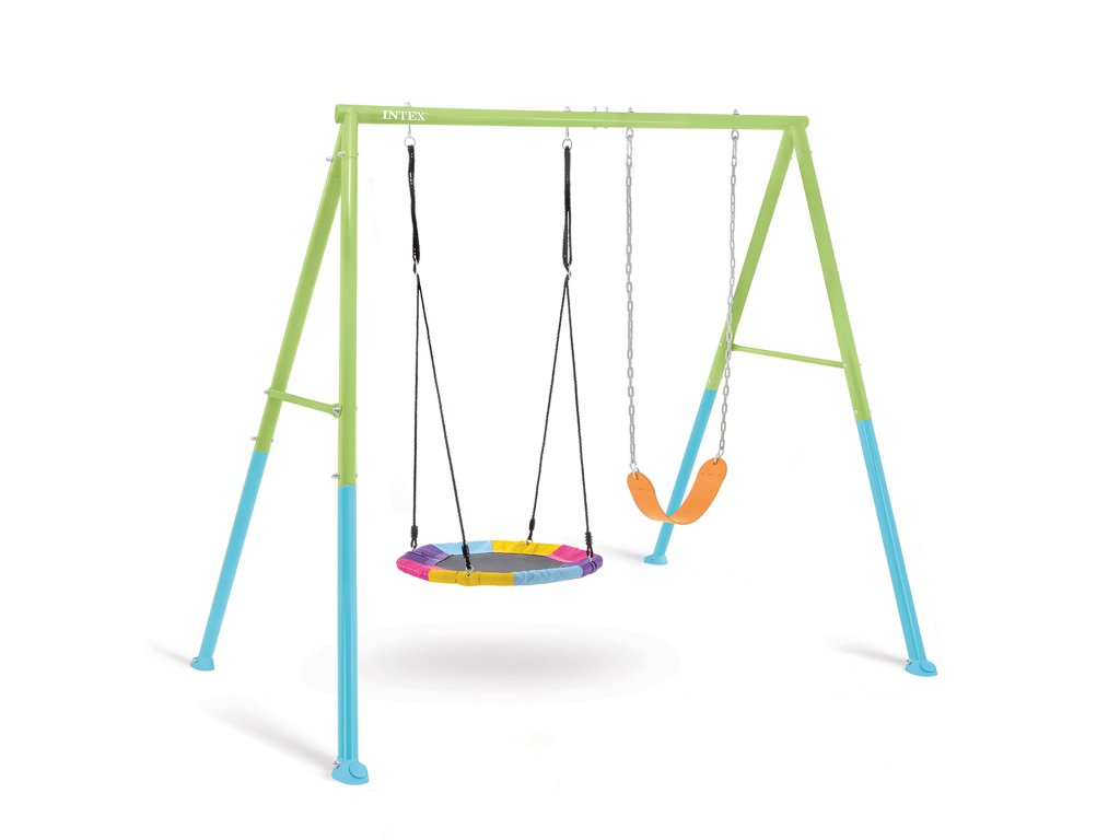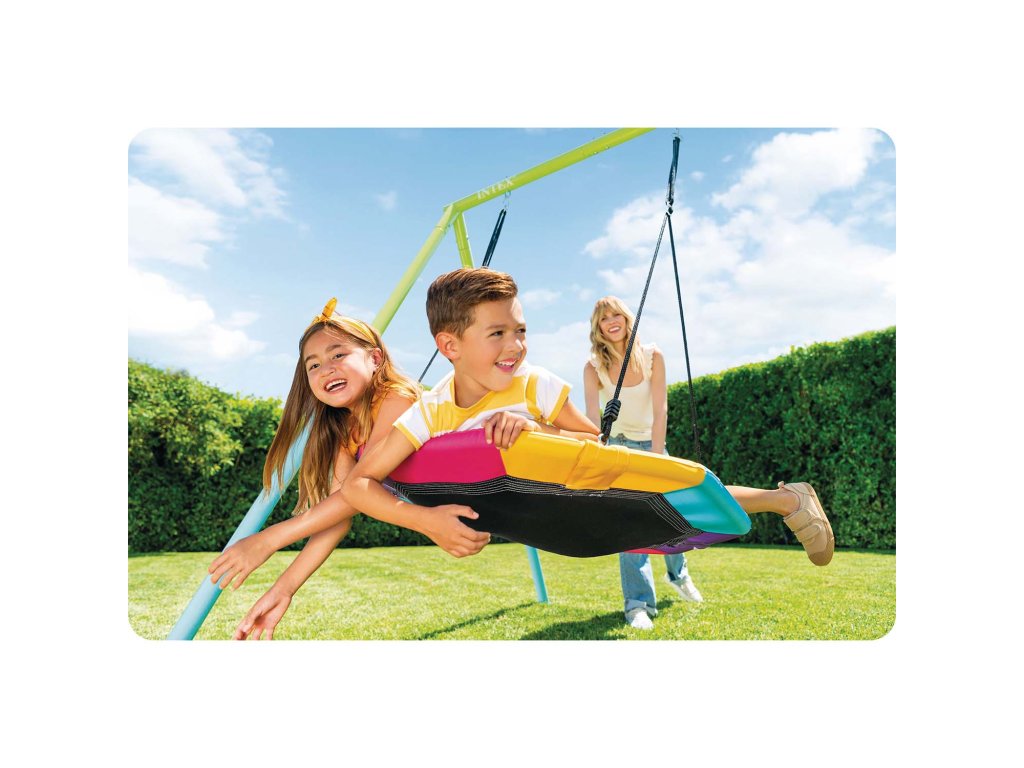 Nové houpačky využívají potenciál pozinkované oceli o průměru trubek 6 cm k dosažení vyšší pevnosti a odolnosti konstrukce. Děti budou z této houpačky nadšené. Společnost Intex ji navrhla s ohledem na kvalitu i bezpečnost. Speciální háky upevňující houpačku k zemi zaručují stabilitu a bezpečnost. Zábava pro děti ve věku od 3 do 10 let. houpačka "Čapí hnízdo" je určena pro děti s hmotností do 50 kg. Maximální počet dětí na houpačce "Čapí hnízdo" 2 osoby. Na flexibilním sedátku s řetězy 1 osoba, max. hmotnost 50 kg.