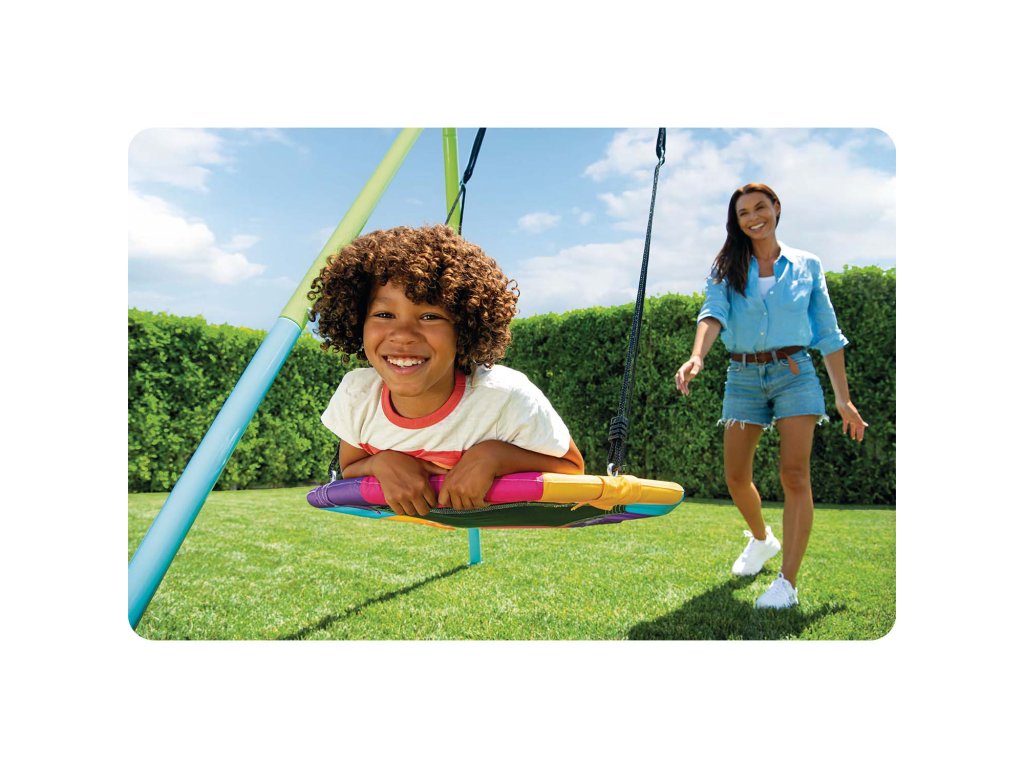 Odolné a pro děti bezpečné materiály. Díky jednoduchému a funkčnímu vnitřnímu uspořádání obalu a jasnému návodu k montáži bude montáž houpačky jednoduchá a rychlá.