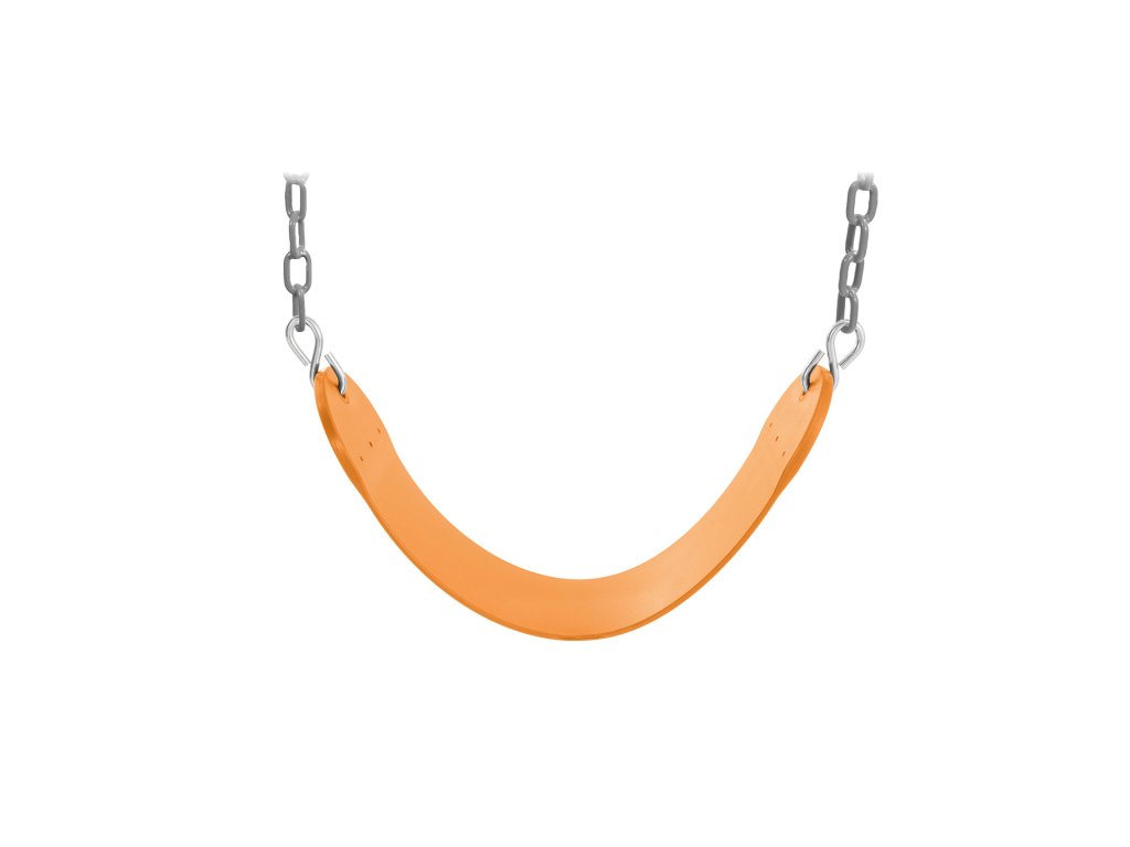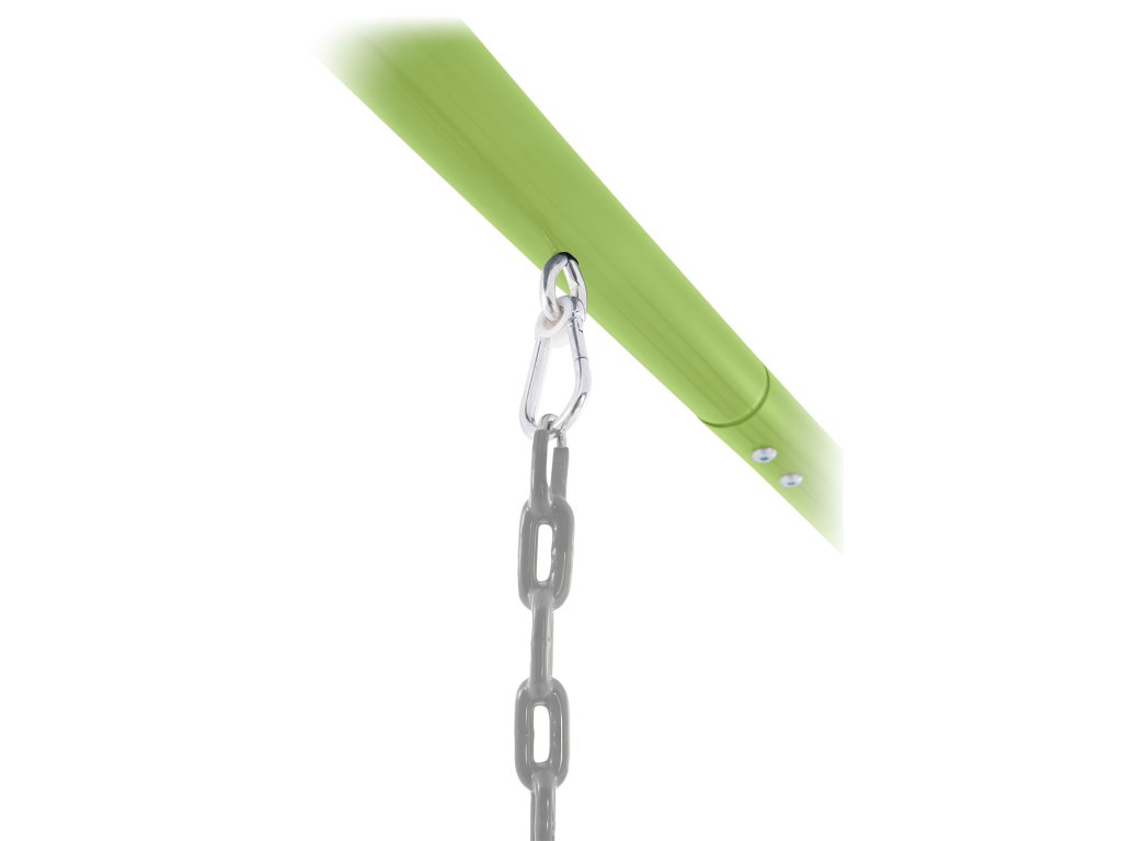 Pružné sedadlo s houpacími řetězy potaženými plastizolem.