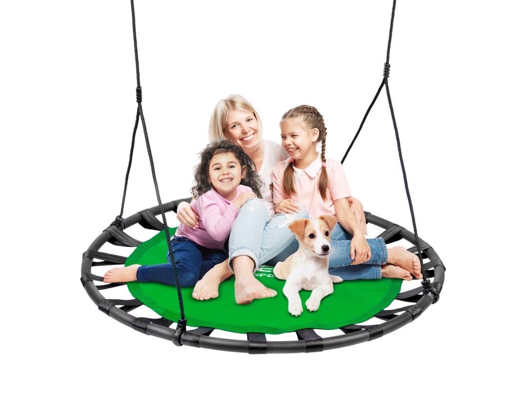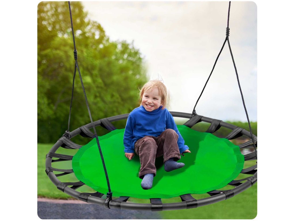 Je to skvelá zábava pre mladých aj trochu starších. Hojdačka s oceľovým rámom pokryté mäkkou ochrannou penou, vyrobené z pevného materiálu s mnohonásobným prešívaním a na silných závesných lanách. Zaručuje bezpečnosť, stabilitu a odolnosť. Polyester Oxford 600D, z ktorého je sedadlo vyrobené, je vodotesný a ľahko sa čistí.