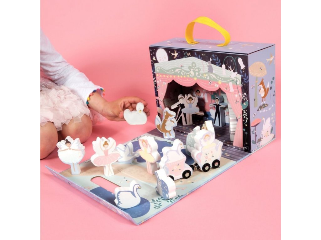 Hrací skříňka s dřevěnými figurkami Zakletá labuť
