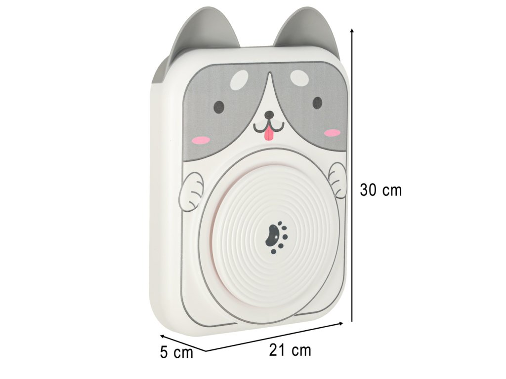 Technické údaje: - Věk dítěte: 3+- Motiv: pes - Barvy : bílá, šedá Materiál: ABS plast- Napájení: USB- Rozměry podstavce s kolečkem: 30 x 21 x 5 cm- Průměr kola: 12,7 cm- Balení: barevný karton výrobce - 35 x 23,5 x 5,5 cm