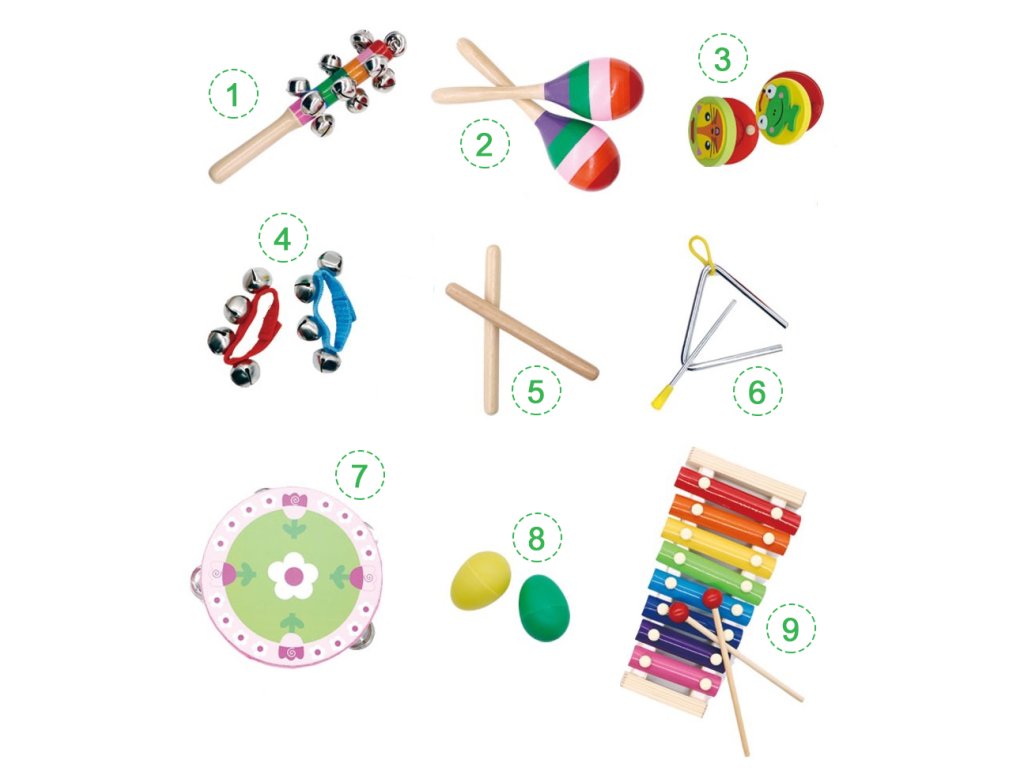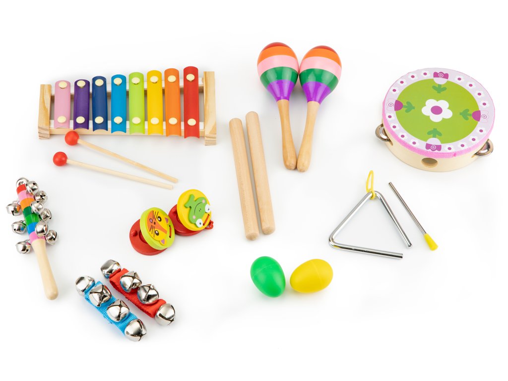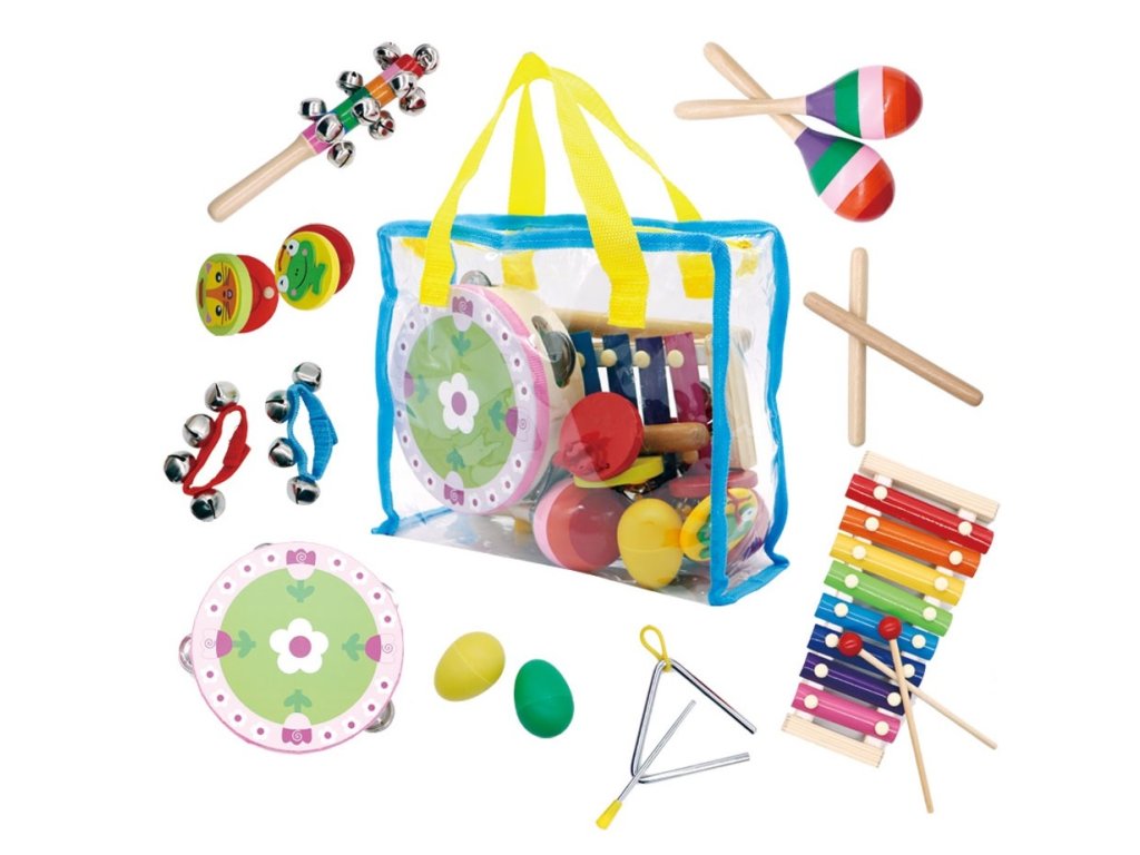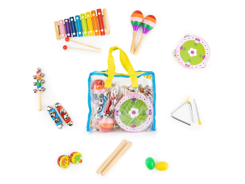 Sada 14 hudebních nástrojů pro děti od 3 let. Rozvíjí motorické a hudební dovednosti. Bezpečné zpracování, certifikát CE a EN71. Dárek, který zaujme a pobaví celou rodinu.