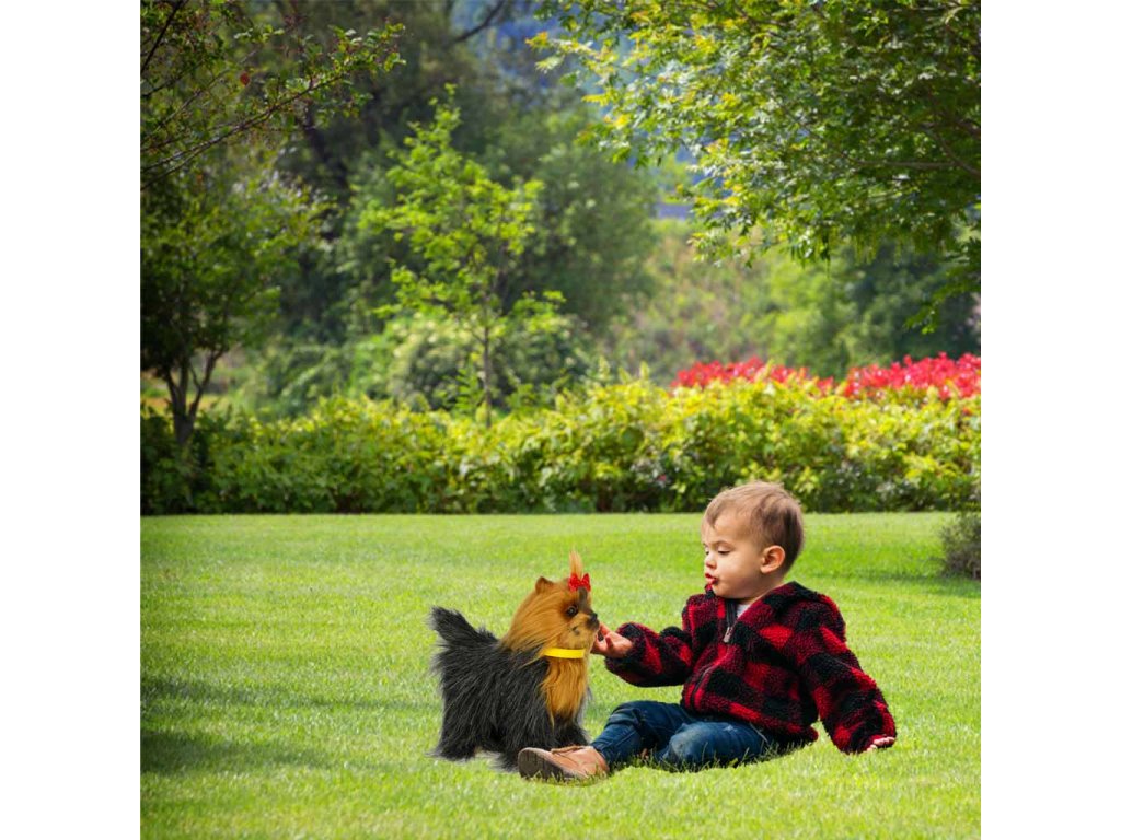 Jedinečný interaktivní pes je kamarádem každého batolete Tento rozkošný pes má výjimečně přátelský vzhled, měkká srst příjemná na dotek a pečlivě propracované detaily, které napodobují skutečného psa plemene York. Od prvního okamžiku přitahuje pozornost dětí. Roztomilá červená mašle a obojek dodávají hračce ještě větší realističnost a kouzlo. Její interaktivní prvky podporuje rozvoj vnímání a emočních vazeb. Interaktivní pes umožňuje dětem převzít roli pečovatele, čímž se u nich buduje pocit odpovědnosti a empatie. Je to skvělá příležitost, aby se dítě učilo hrou, bez obrazovek a nadměrného množství digitálních podnětů.
