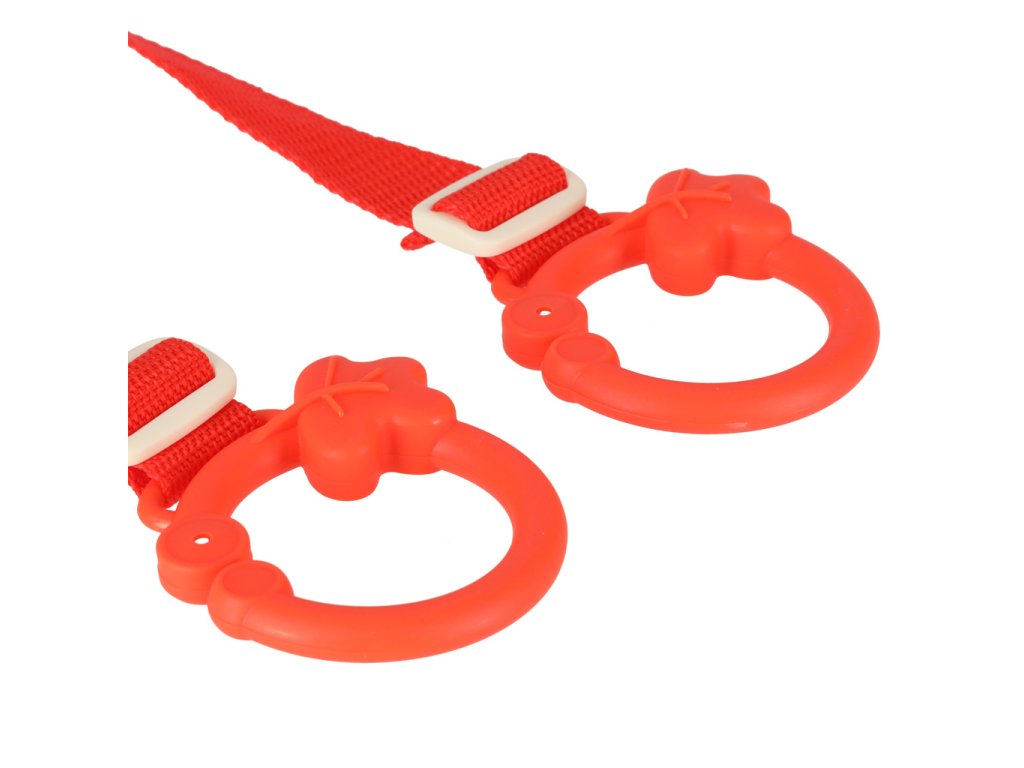 Hračka se připevňuje k opěrkám hlavy předních sedadel pomocí plastových koleček na nastavitelných popruzích. .