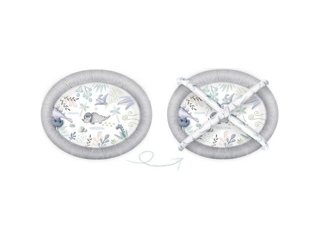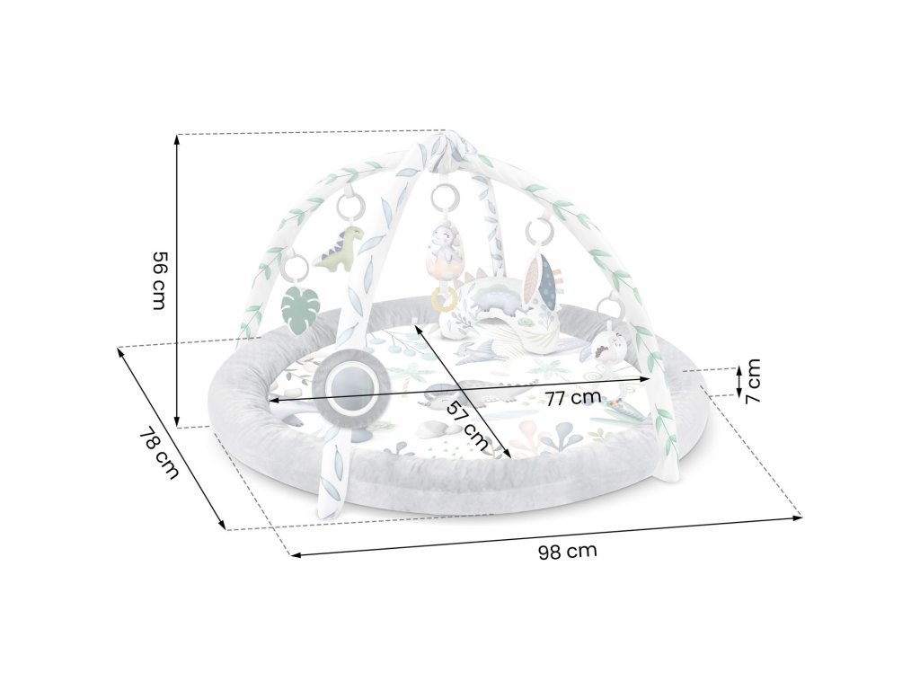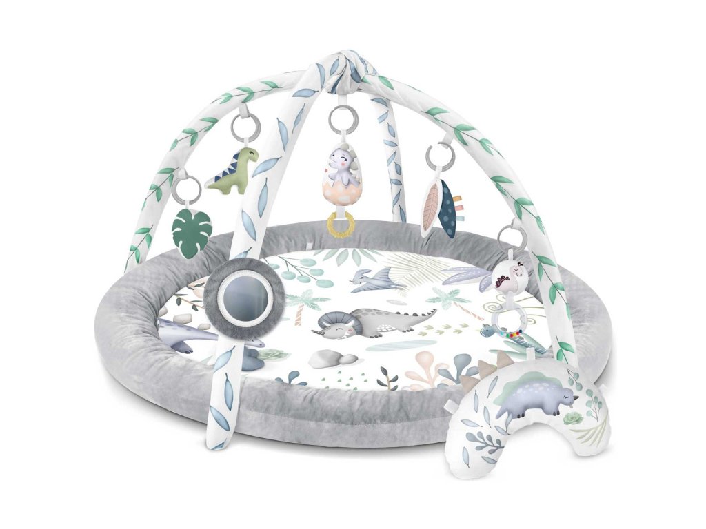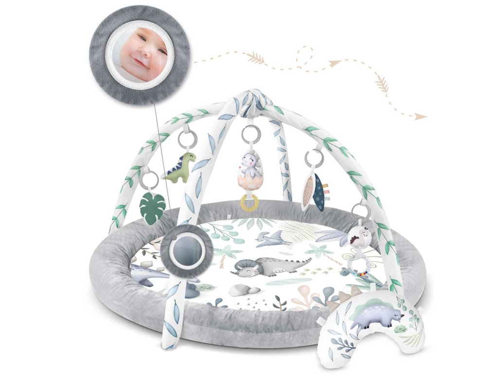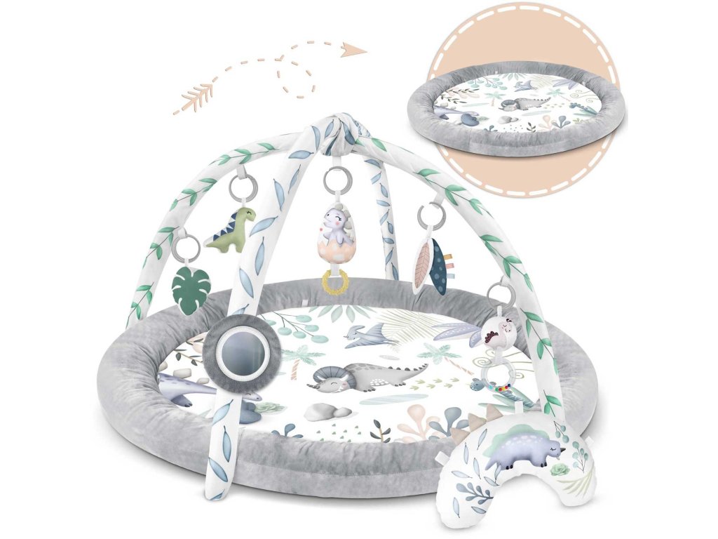 Z tohto dôvodu pripájame k podložke multifunkčné hračky ktoré môžete zavesiť na oblúky - nech niečo hrká, zvoní a šuští! Medzi hračkami je dokonca aj pískacia hračka - dinosaurus a skamenelina!
