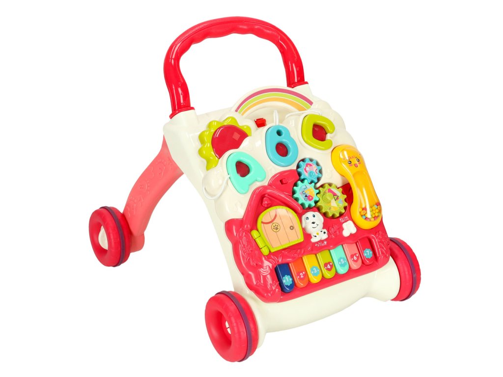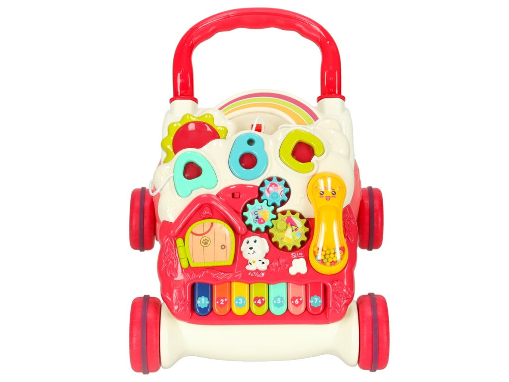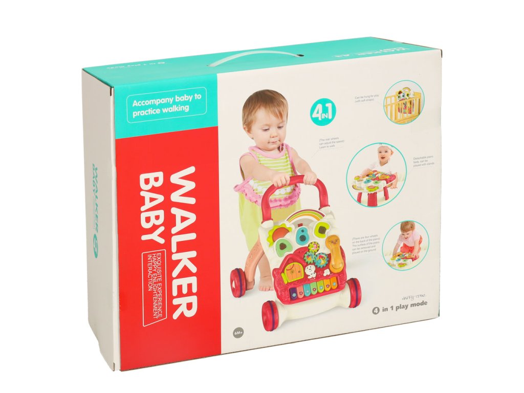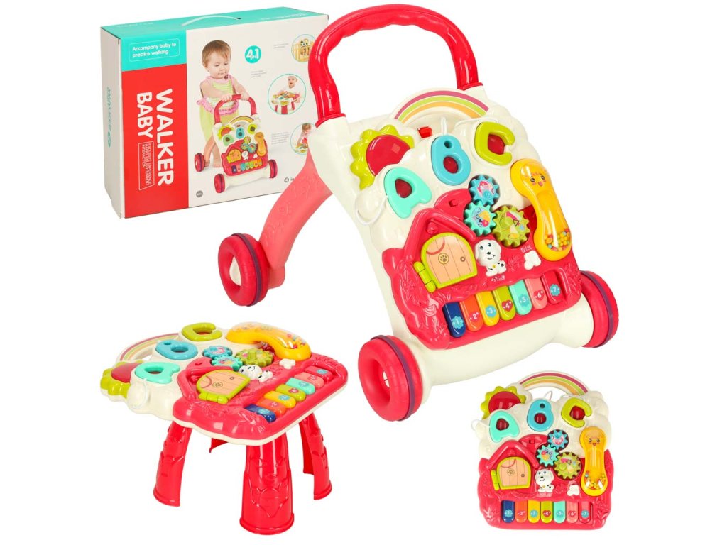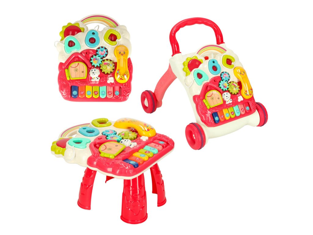 čtyři produkty v jednom - prvky sady lze vyměňovat, čímž se výrobek změní na herní desku, výukový stůl nebo praktické dětské chodítko