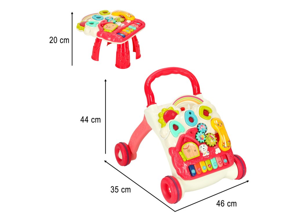 Pohodlí vašeho dítěte během hry je prioritou! Proto jsou jak stůl, tak chodec dokonale přizpůsobené výšce batolete , takže každá hra u stolu a učení se chůzi je pohodlné a bezpečné!